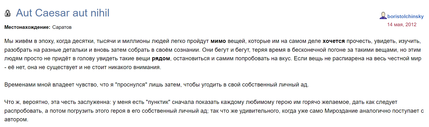 Автор: Борис Толчинский aka Брайан ТолуэллЖЖ вдруг выдал мне воспоминание ещё 2012 года. Тогда я писал под замком, лишь для френдов. А сегодня смотрится оно словно пророчество из книги фэнтези.