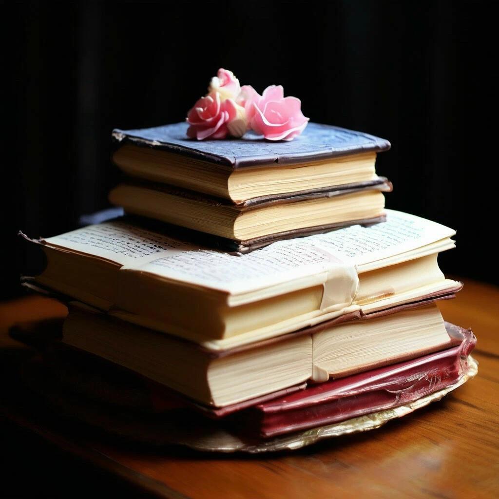 Праздничный книжный торт, сгенерированный нейросеткой, прилагаю