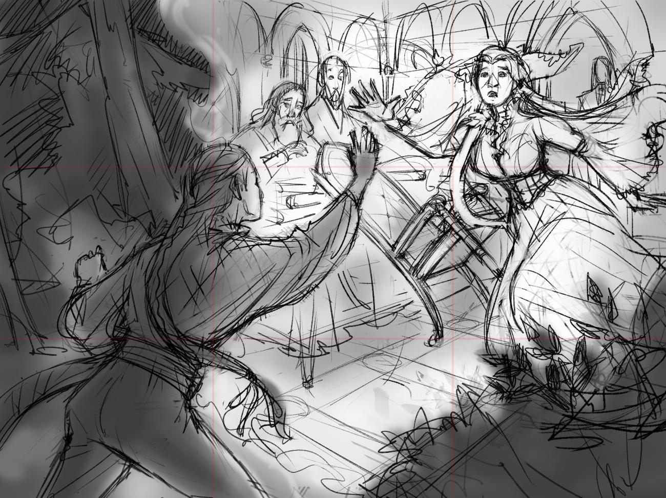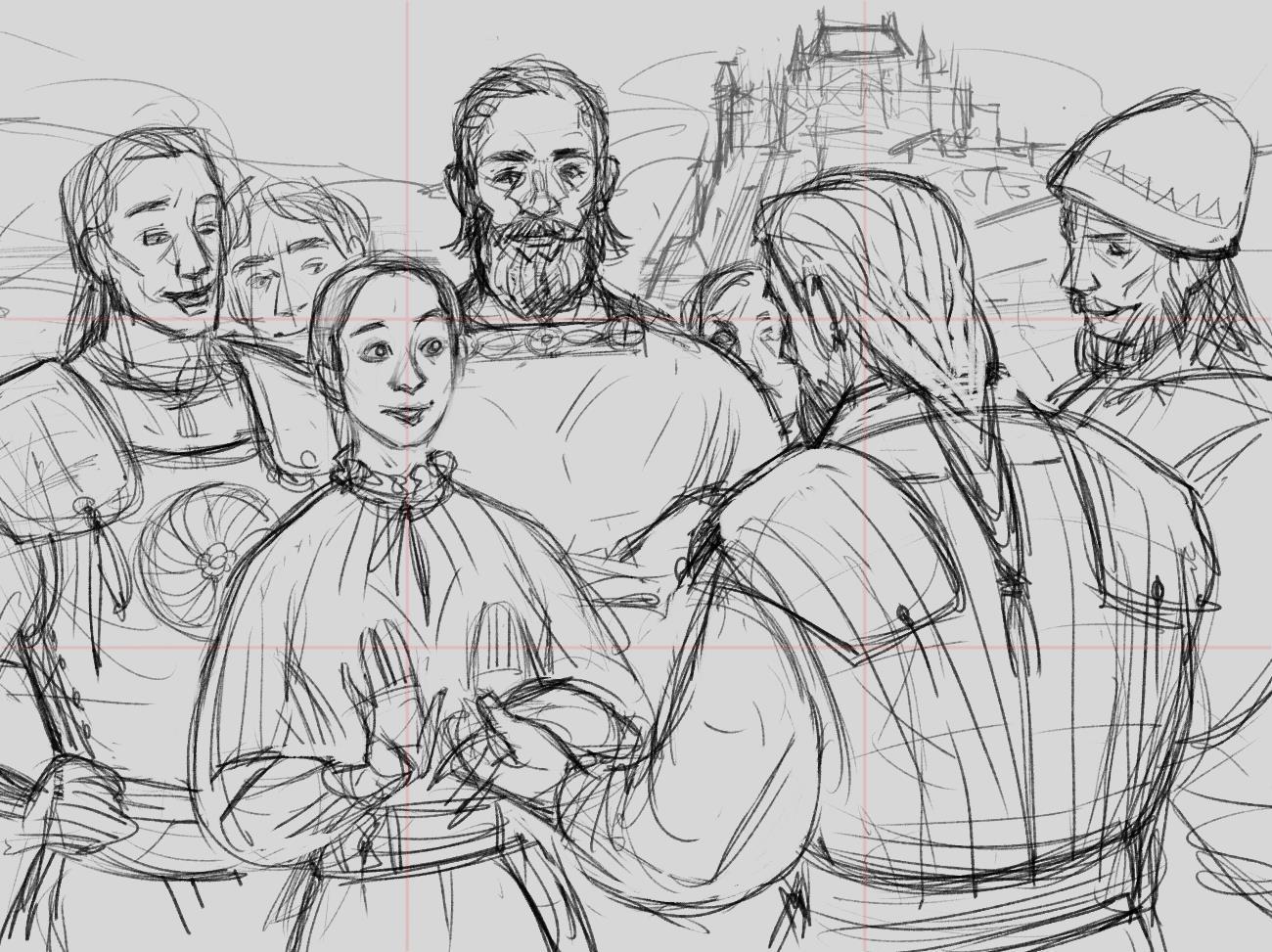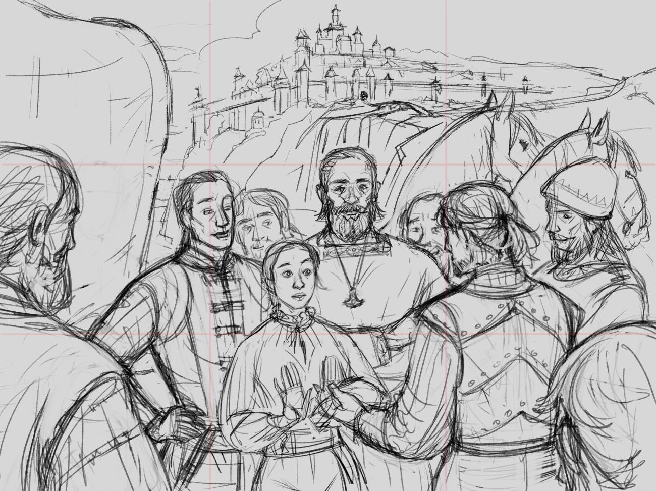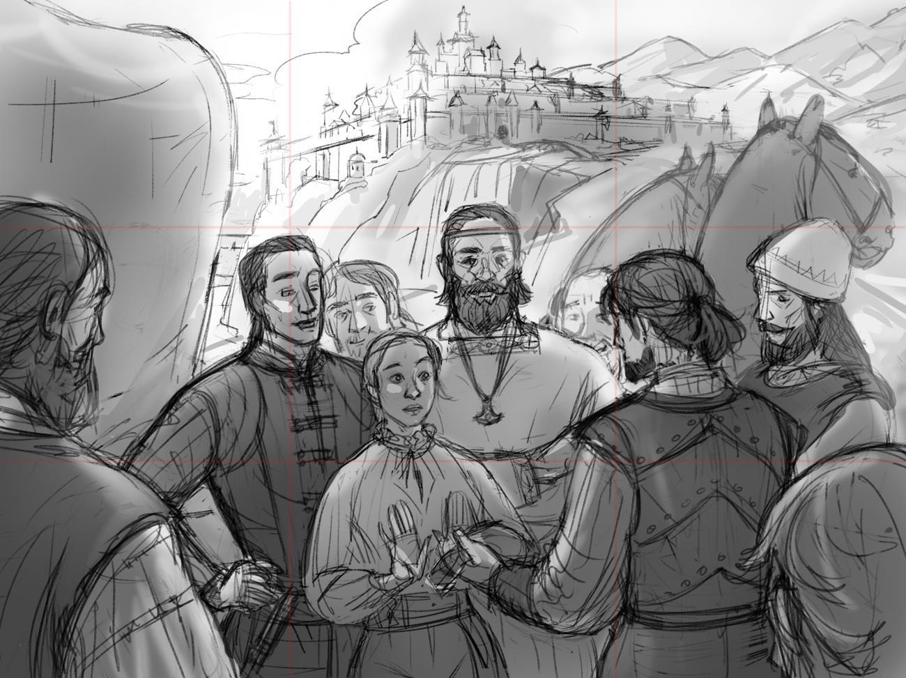 9. Боковая ветка: сватовство. Таша, ее матушка и жених. Легче всего эта картинка пошла.
