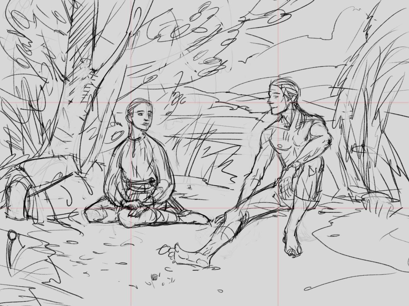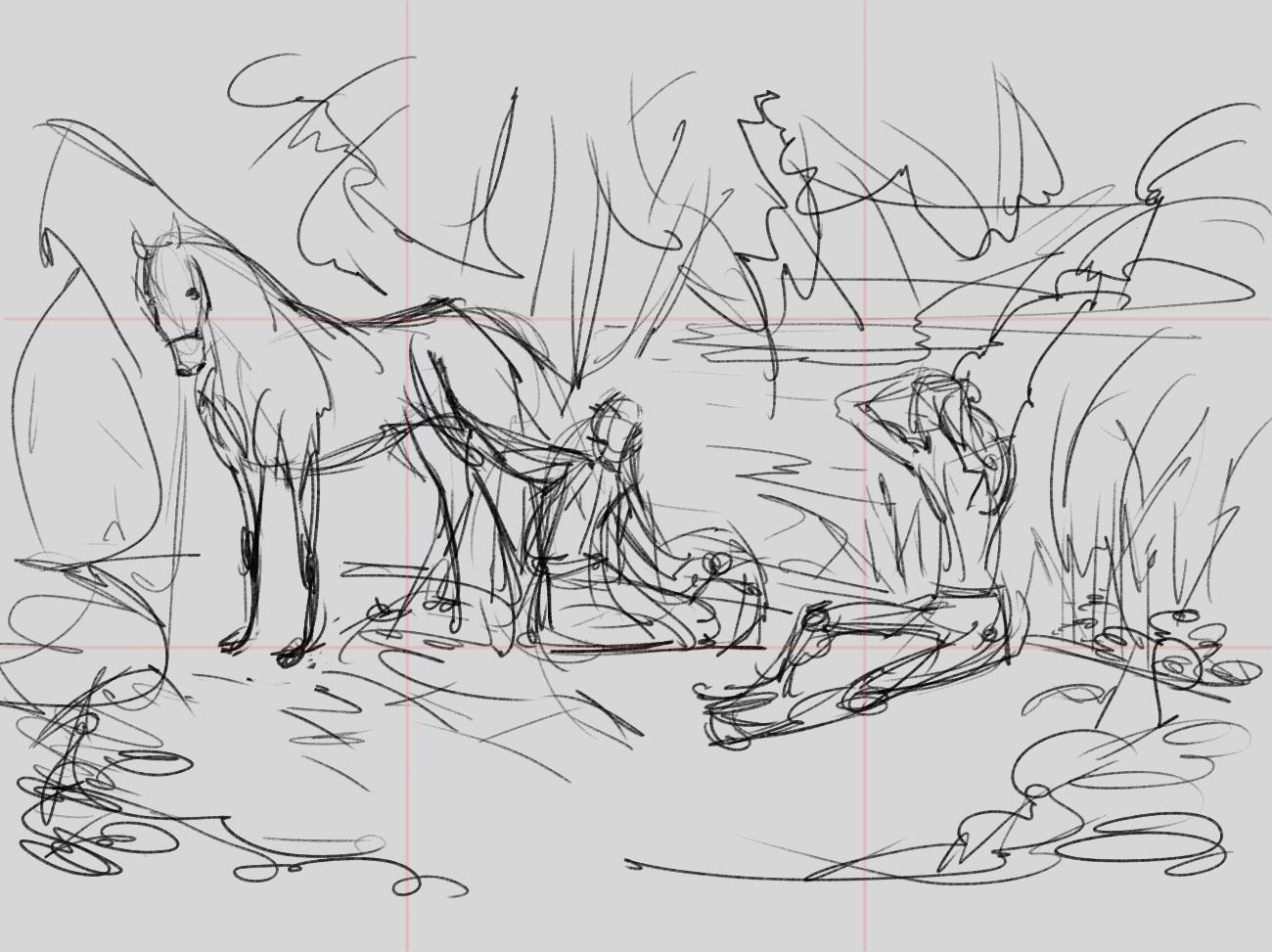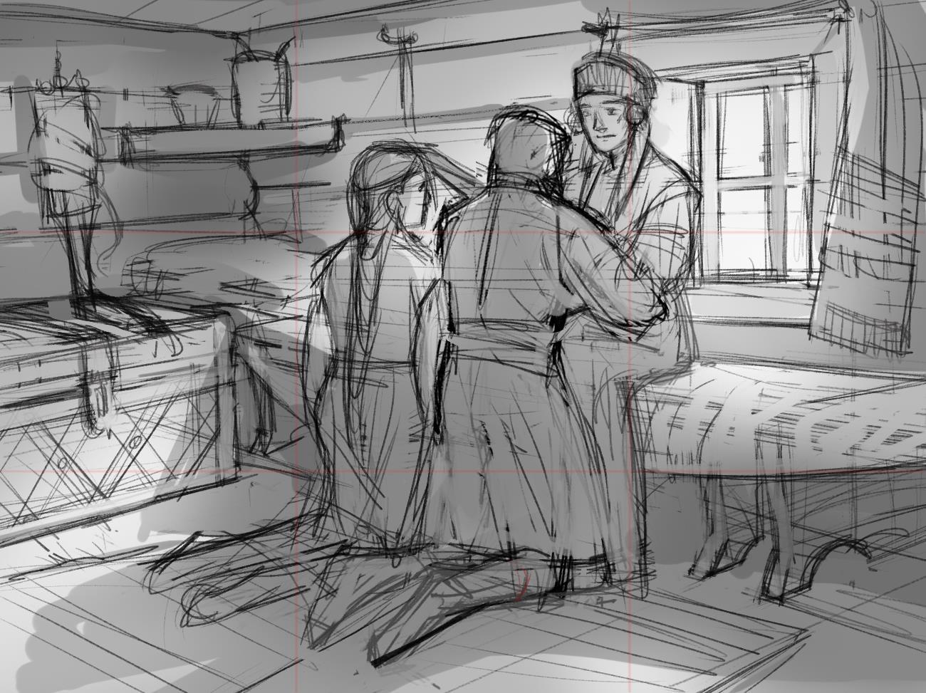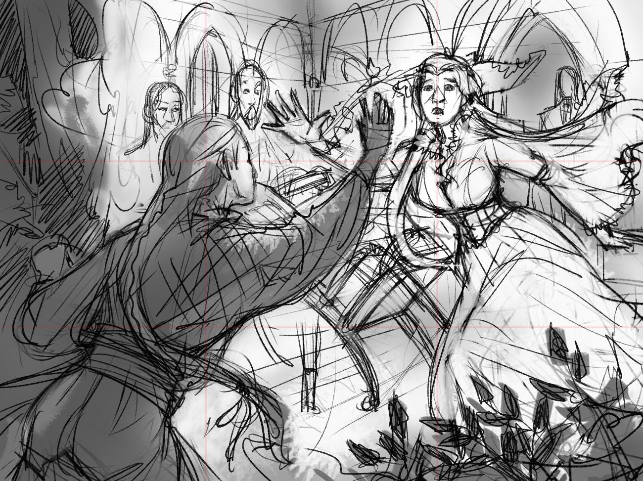 9. Боковая ветка: сватовство. Таша, ее матушка и жених. Легче всего эта картинка пошла.