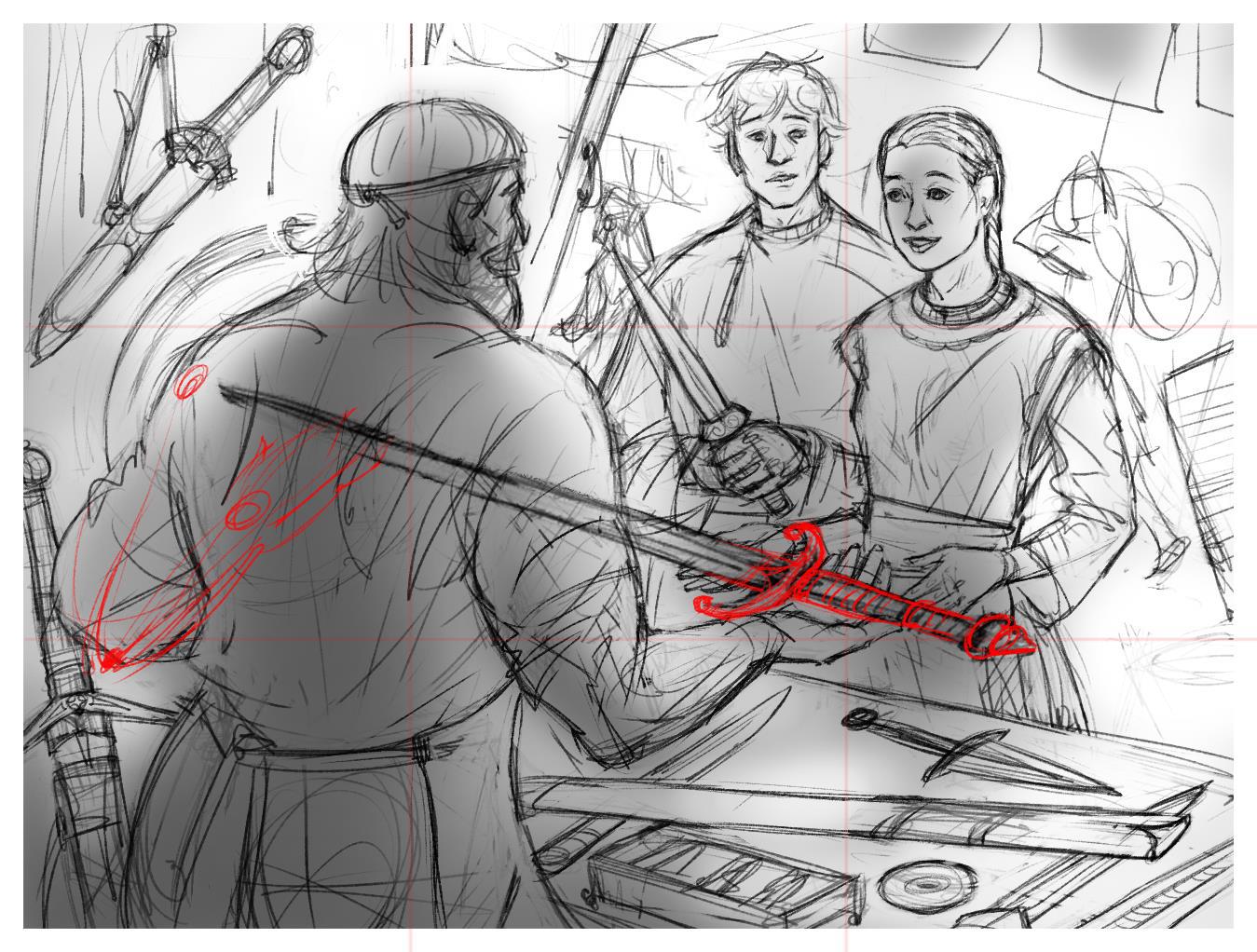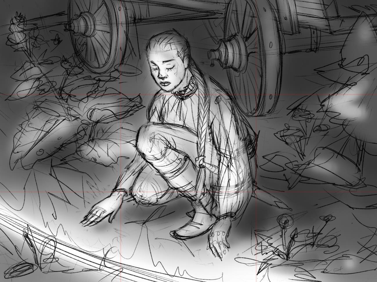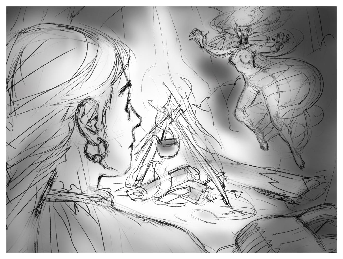 Поработать нам с Ланой довелось плотно, не сразу определились с конкретным стилем, а с некоторыми картинками еще и пришлось отдельно пободаться, покрутить композицию.