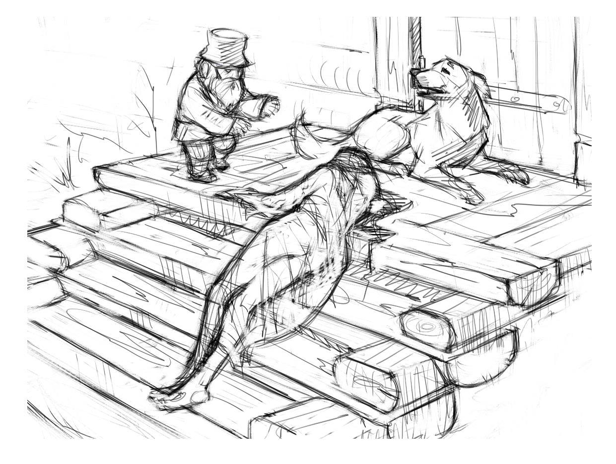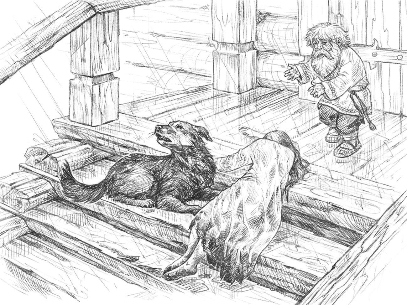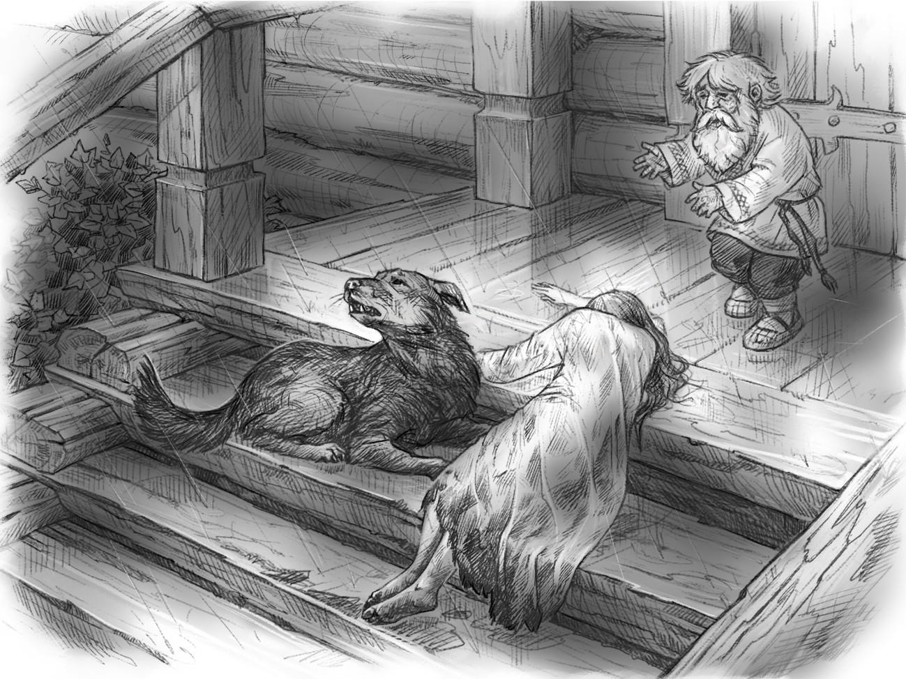 1. Маленькая Леонка добрела до своего временного дома. Действующие лица: девочка, собака, домовой, дождь и крыльцо избы.