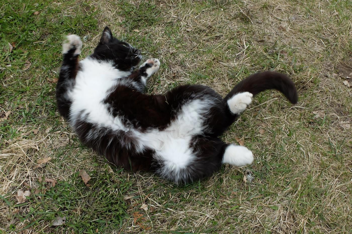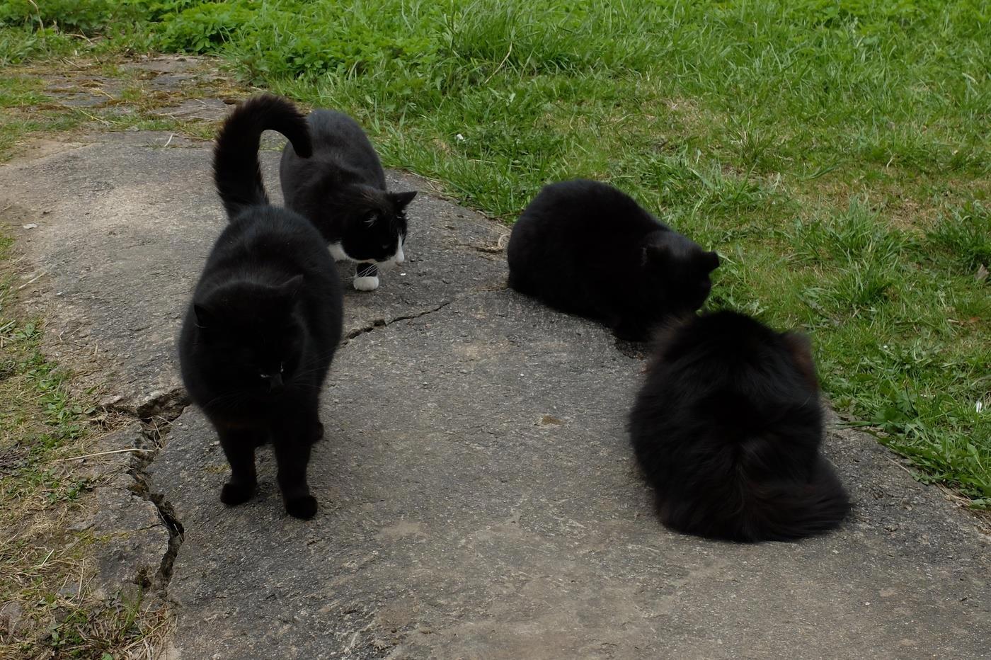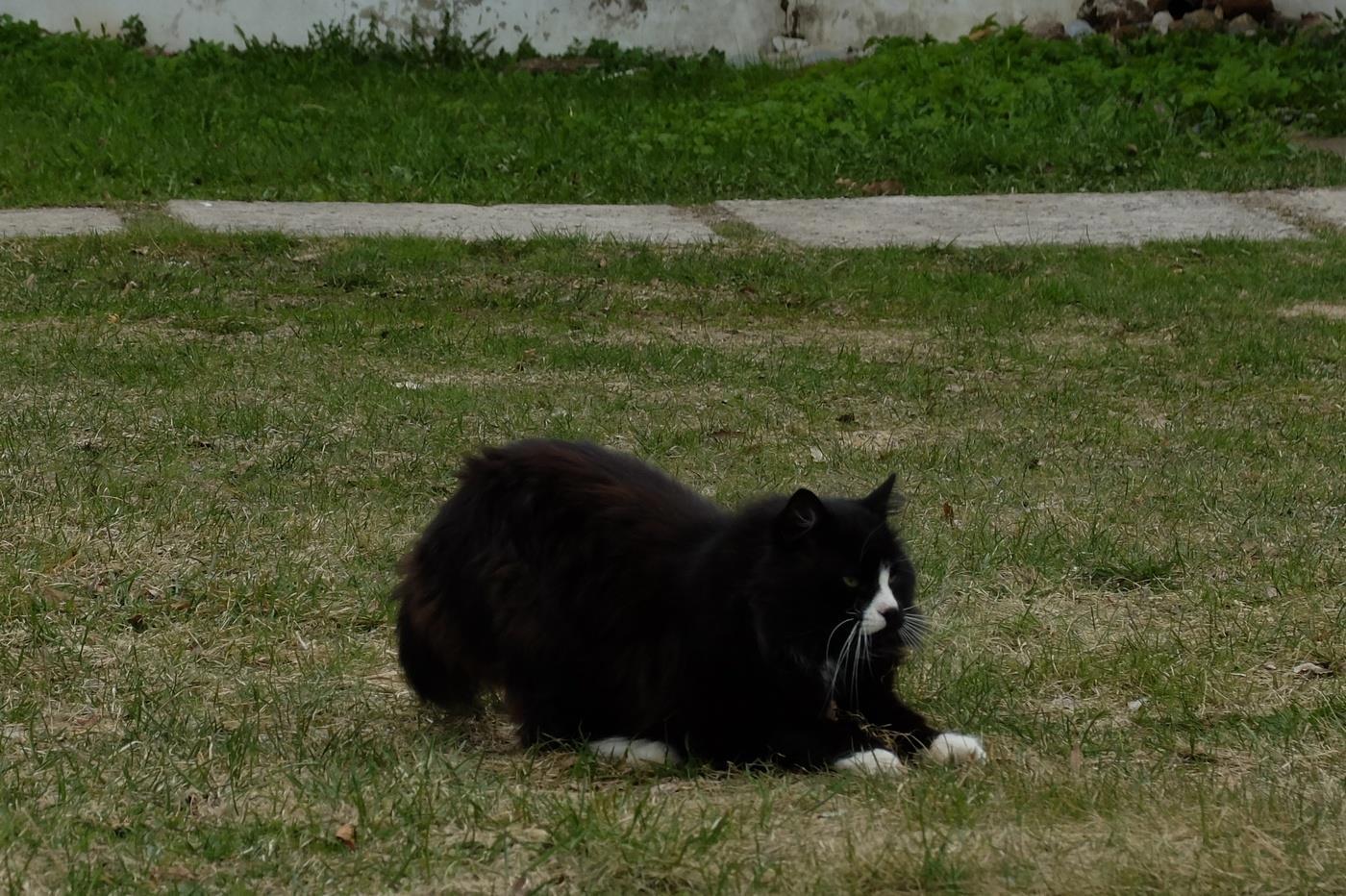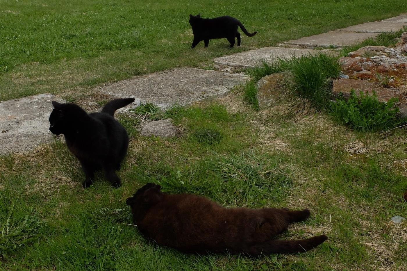 Папа точит когти. Похоже, это действительно папа - крупнее и мощнее остальных, и не подходит гладиться. Как говорят, весь выводок - от одних родителей, поэтому все чёрные: