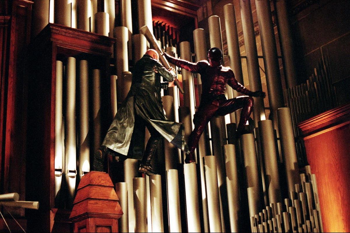 Тут нет истории персонажей. Не, Мэтт ещё худо-бедно объясняет - откуда картишки, сделавшие его джокером в колоде ночного Нью-Йорка. Но вот почему Электра и Меченый сигают по стенам, бегают по воистину колоссальному органу с трубами, равняющимися по высоте и диаметру тепловым, торчащим из каждой ТЭЦ, почему они же скачут по стенам ровно персонаж Саблезубый времён сольного первого «Росомаха».