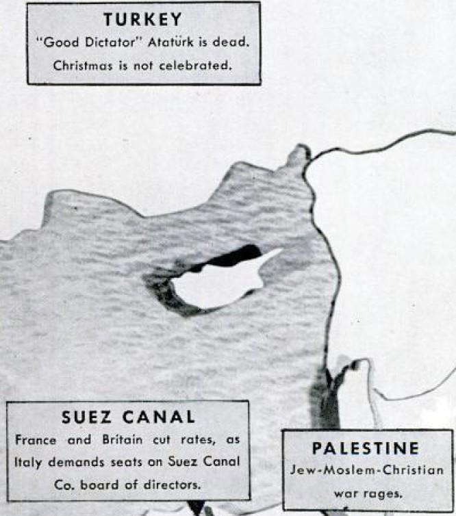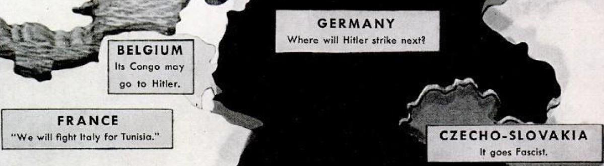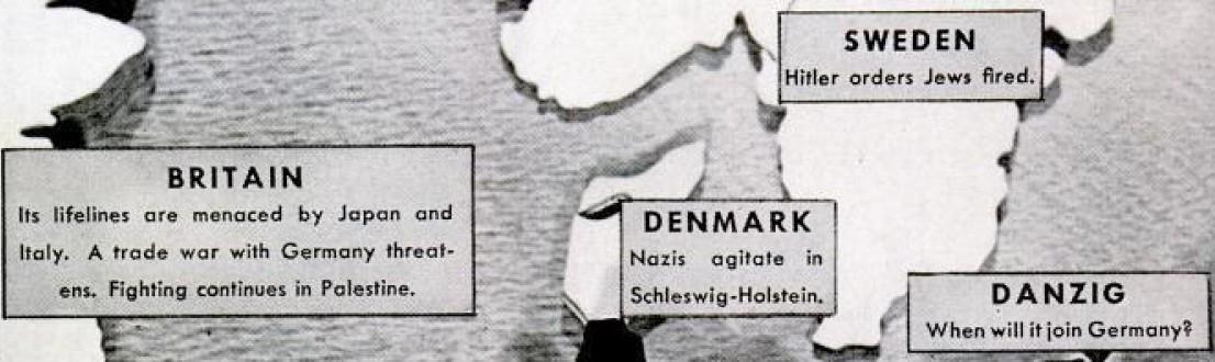 Ангел-вестник не поет для Европы на Рождество 1938 года. Вместо этого сотни страхов, ненависти, зависти, амбиций, гордости, вожделений и отчаяния сотрясают старые столицы современной цивилизации. Главная из них отмечена на карте слева. Глядя на волну проблем в Европе, циник вполне может прийти к выводу, что чем скорее этот континент разорвется на части в результате войны, тем лучше для всего мира.