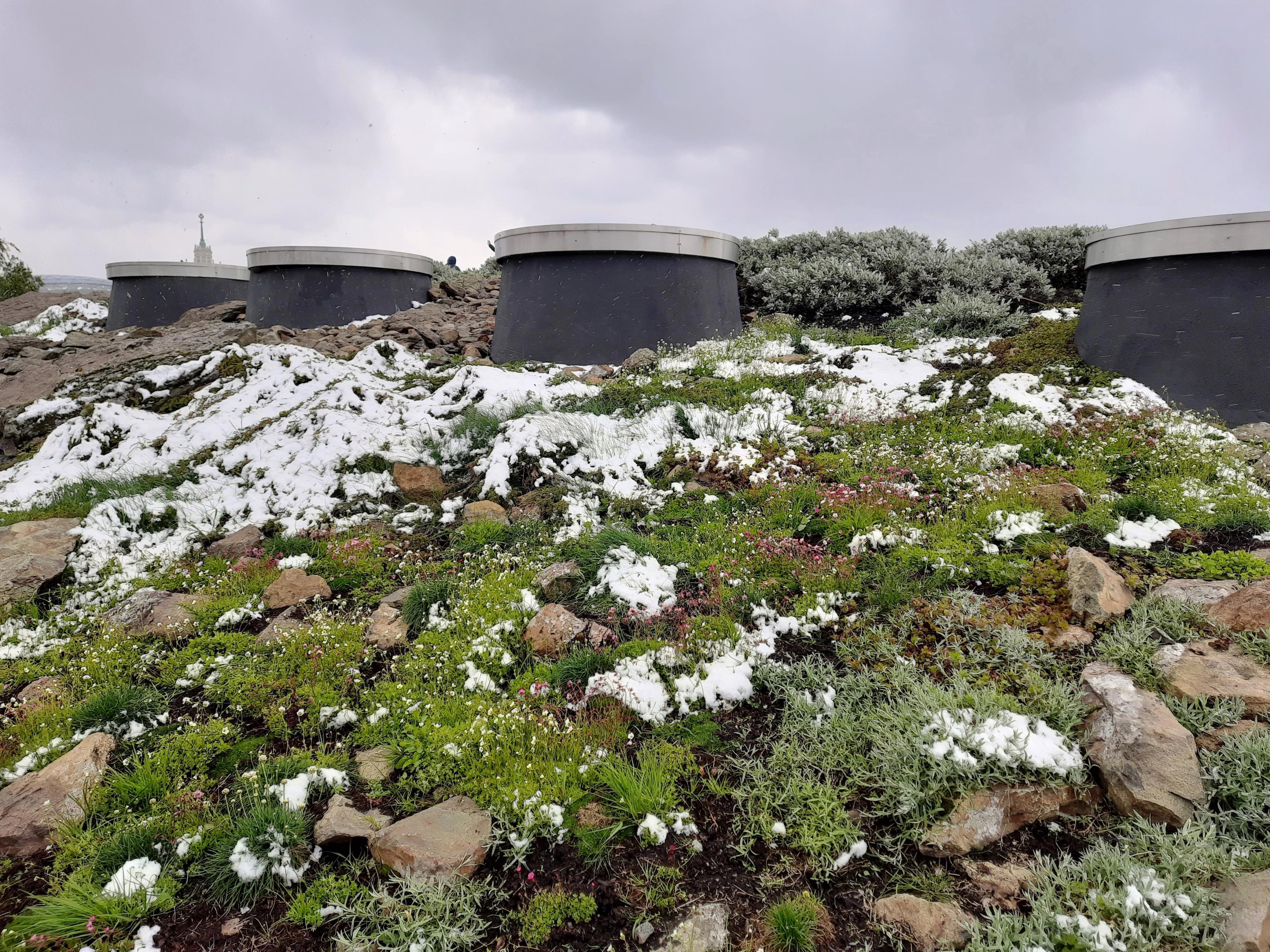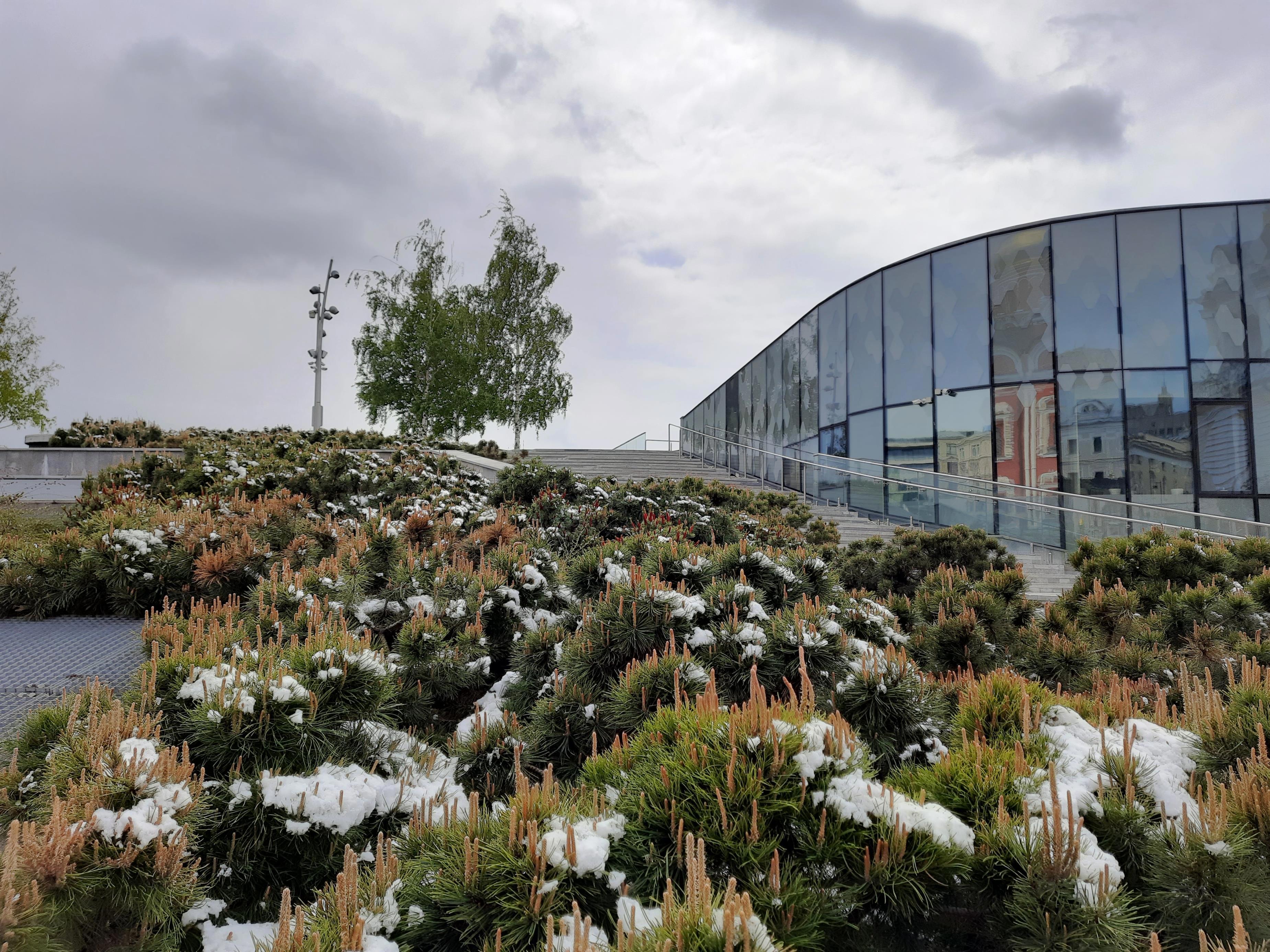 Зима на 9 мая. Снежок в парке "Зарядье"