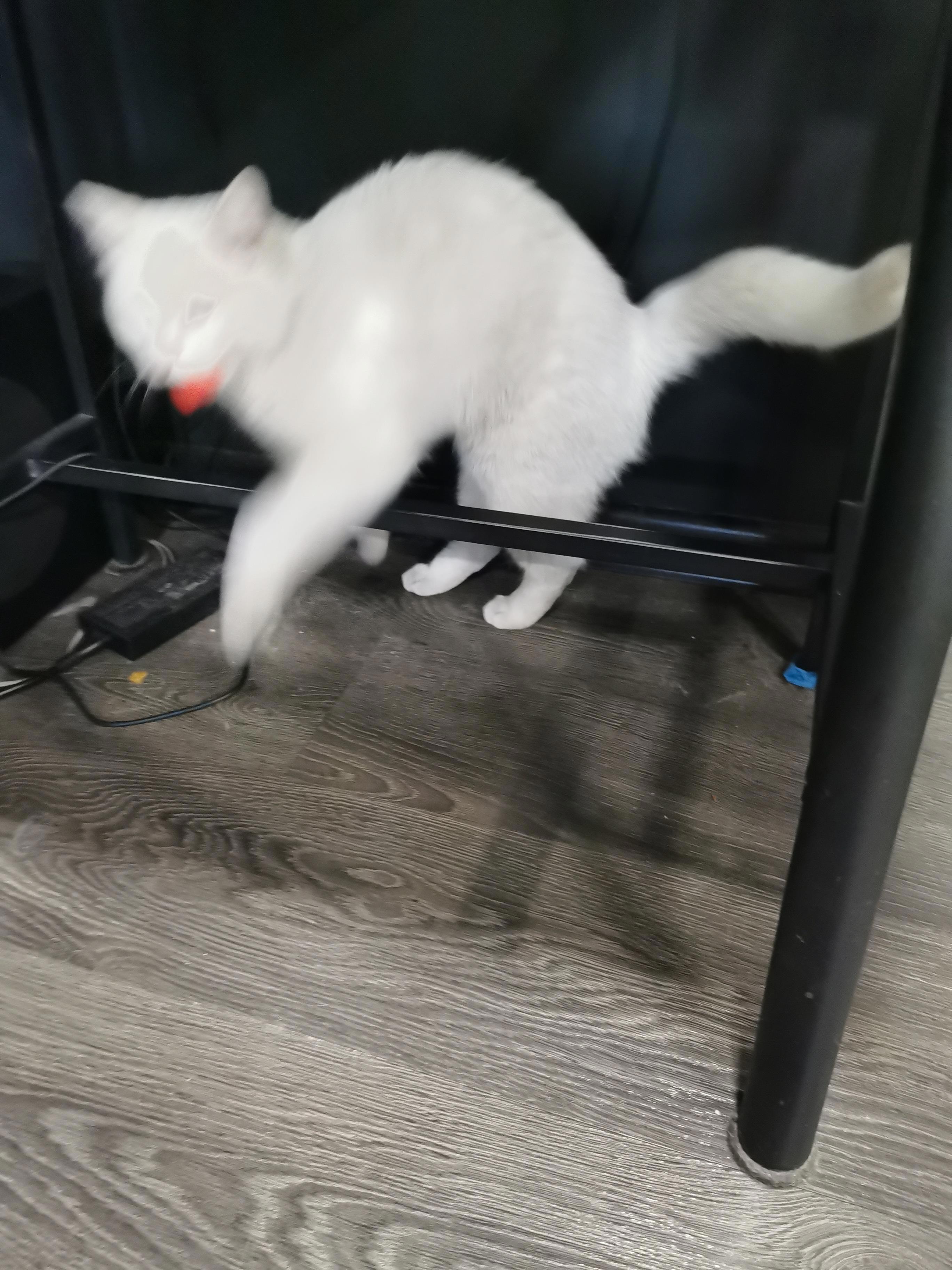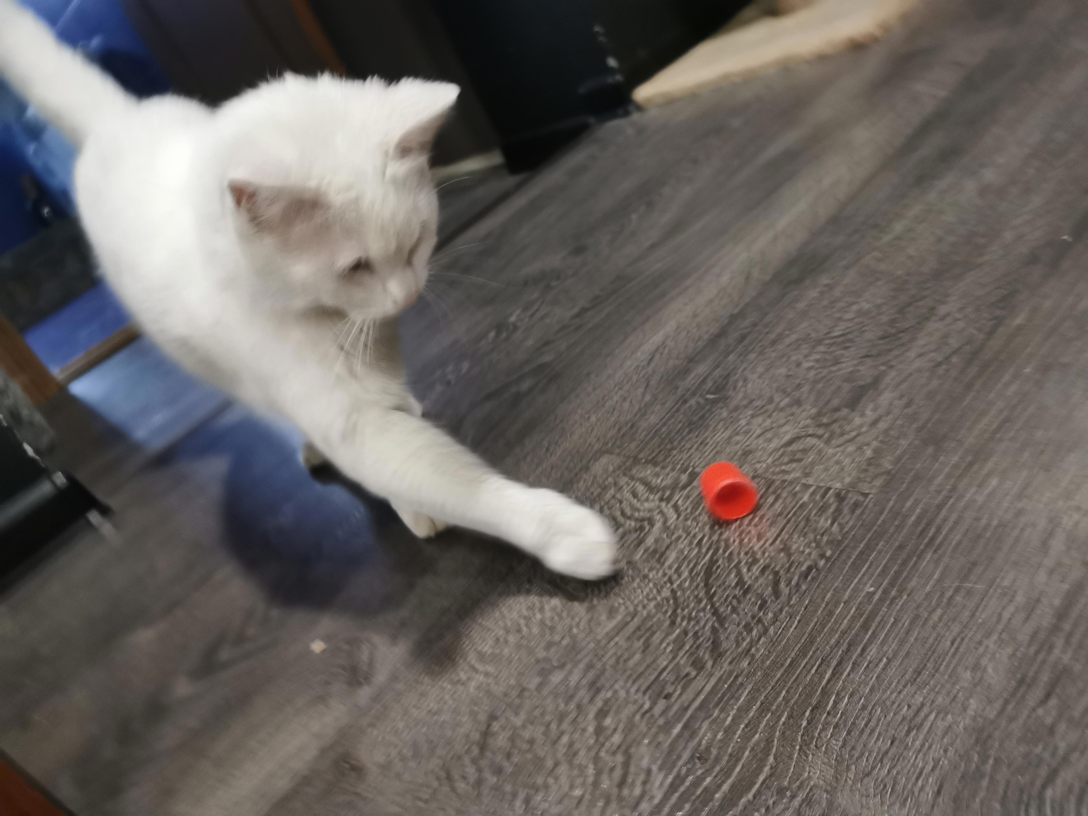 В какой-то момент крышечка укатилась под диван. Хвостосос не растерялся и начал пытаться достать её лапой, но это оказалось не так просто. Он не сдавался, настойчиво пробуя разные углы атаки, пока наконец не сумел вытащить крышечку обратно на свет.