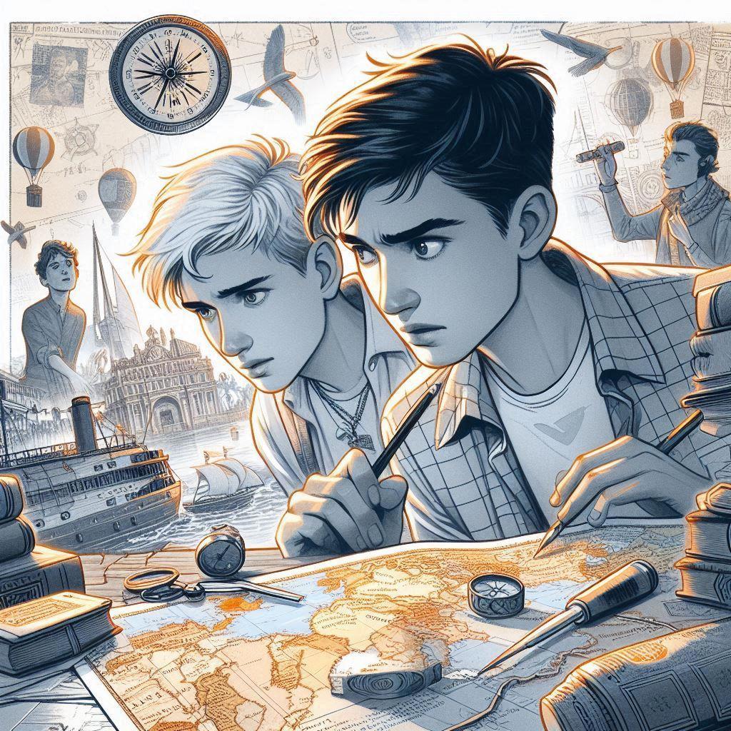 * Друзья начинают изучать карту и собирать информацию о пиратах, которые, по легенде, спрятали клад.