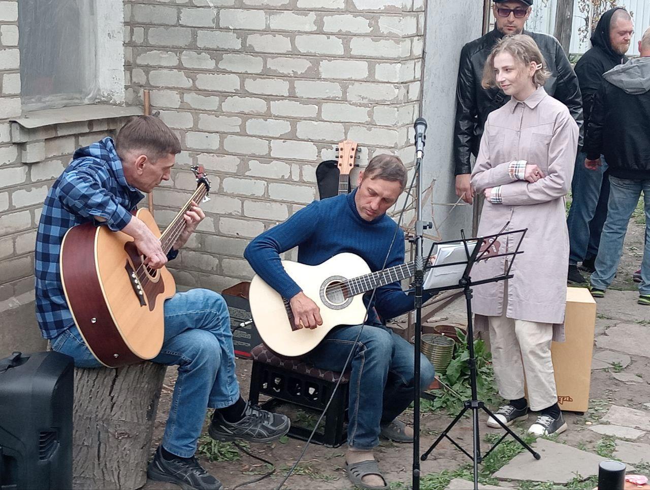 3. Фото с квартирника нашей городской бард-панк-рок-н-ролл тусовки. Одна из традиционных точек сбора находится в доме и прилегающей к дому территории. Чтобы не травмировать тонкую душевную организацию соседей особенно выдающимися текстами настоящих андеграундщиков, звук колонок притушен до уровня громкости ропота недовольства этих самых андеграундщиков.