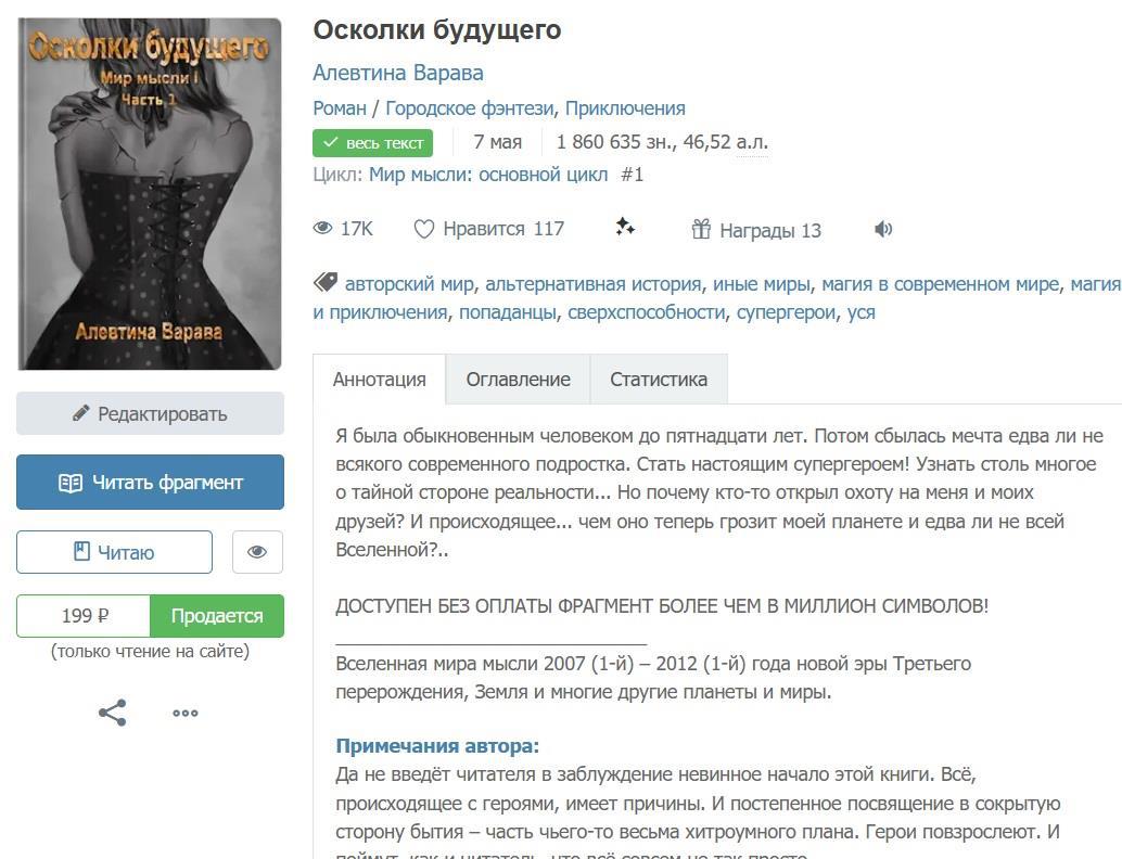 Напоминаю, что у взявшего КС романа "Осколки будущего" всё ещё доступен ознакомительный фрагмент более, чем миллион символов.
