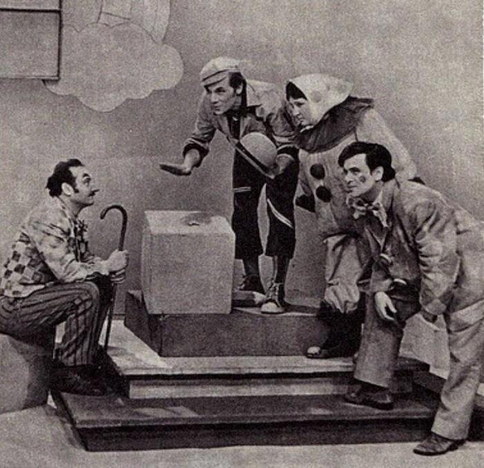 С подачи Успенского на роль клоунов взяли начинающих актеров. Их было четверо - клоун Таня, клоун Саня, клоун Сеня и клоун Владимир Иванович.