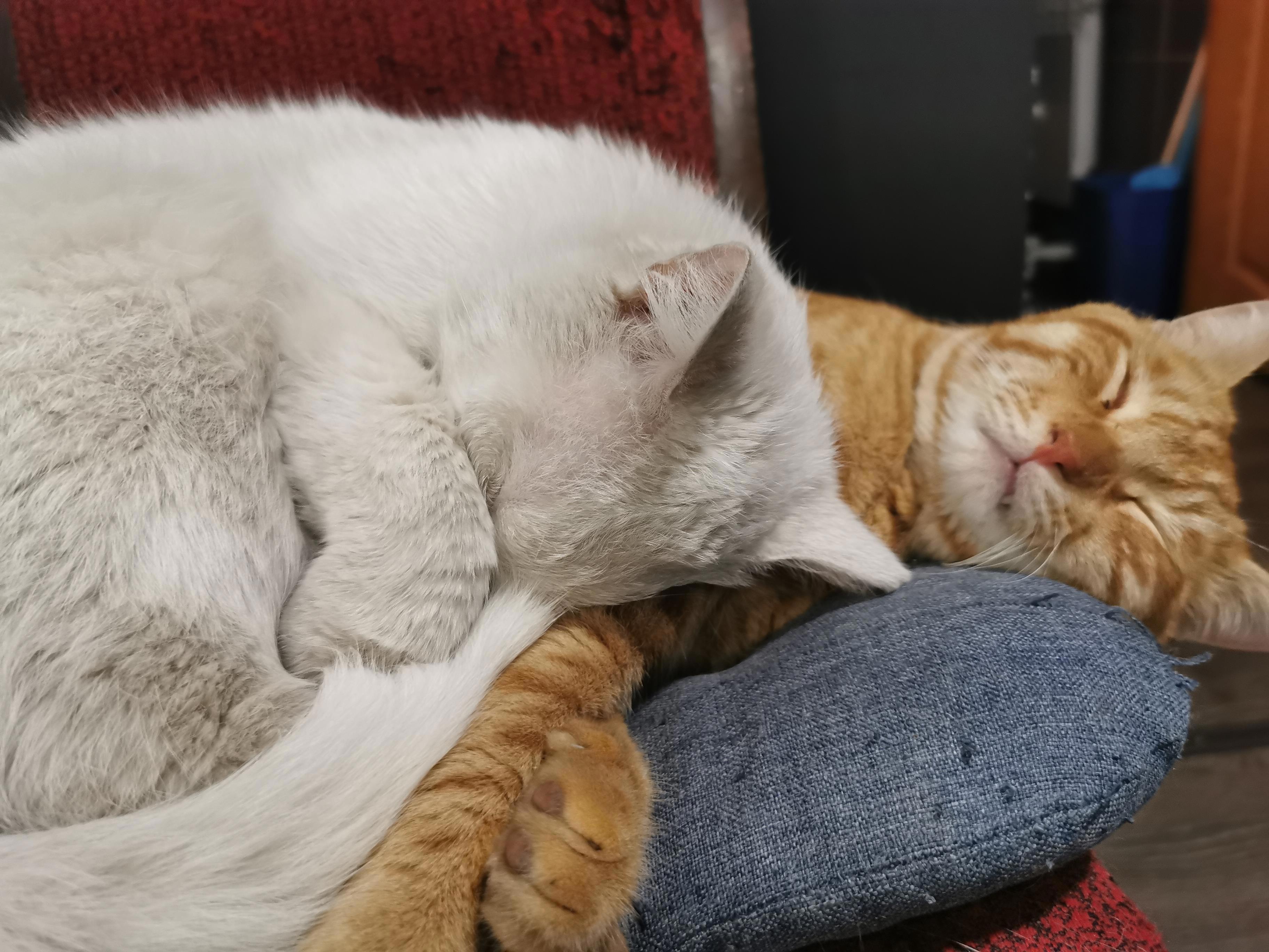 Уставшие, но довольные, коты вернулись в дом. Они устроились на подоконнике, наслаждаясь теплыми лучами солнца и любуясь садом, который теперь казался им еще более интересным местом. Хозяева сделали несколько фотографий, чтобы запечатлеть этот момент – Хвостосос с крышечкой и Рыжак, выглядывающий из-за его спины.