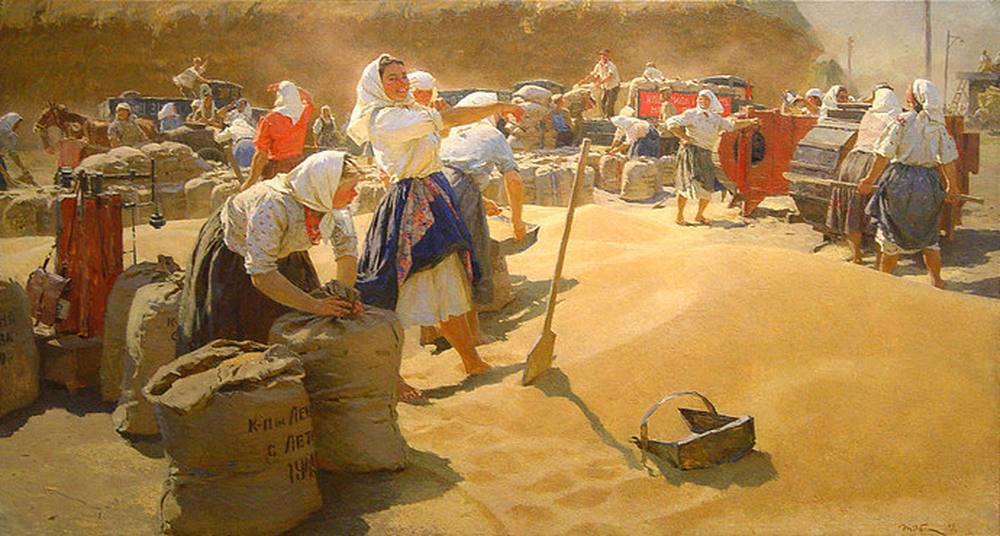 И вот фильм «Кубанские казаки». В самом начале — поле, забитое новенькой сельхозтехникой. На огромных горах пшеницы стоят весёлые селяне и поют весёлые песни. Потом все едут на ярмарку. Ярмарка вся забита колбасами, сырами, радиоприёмниками, легковыми автомобилями (!) и прочими предметами ненаучной фантастики (для пытающихся выживать после войны крестьян). На ярмарке все два дня пляшут, поют и катаются на каруселях. Казаки или в аккуратных костюмах с галстуками, или в белоснежных черкесках. Кульминационный момент — гонки на ипподроме.