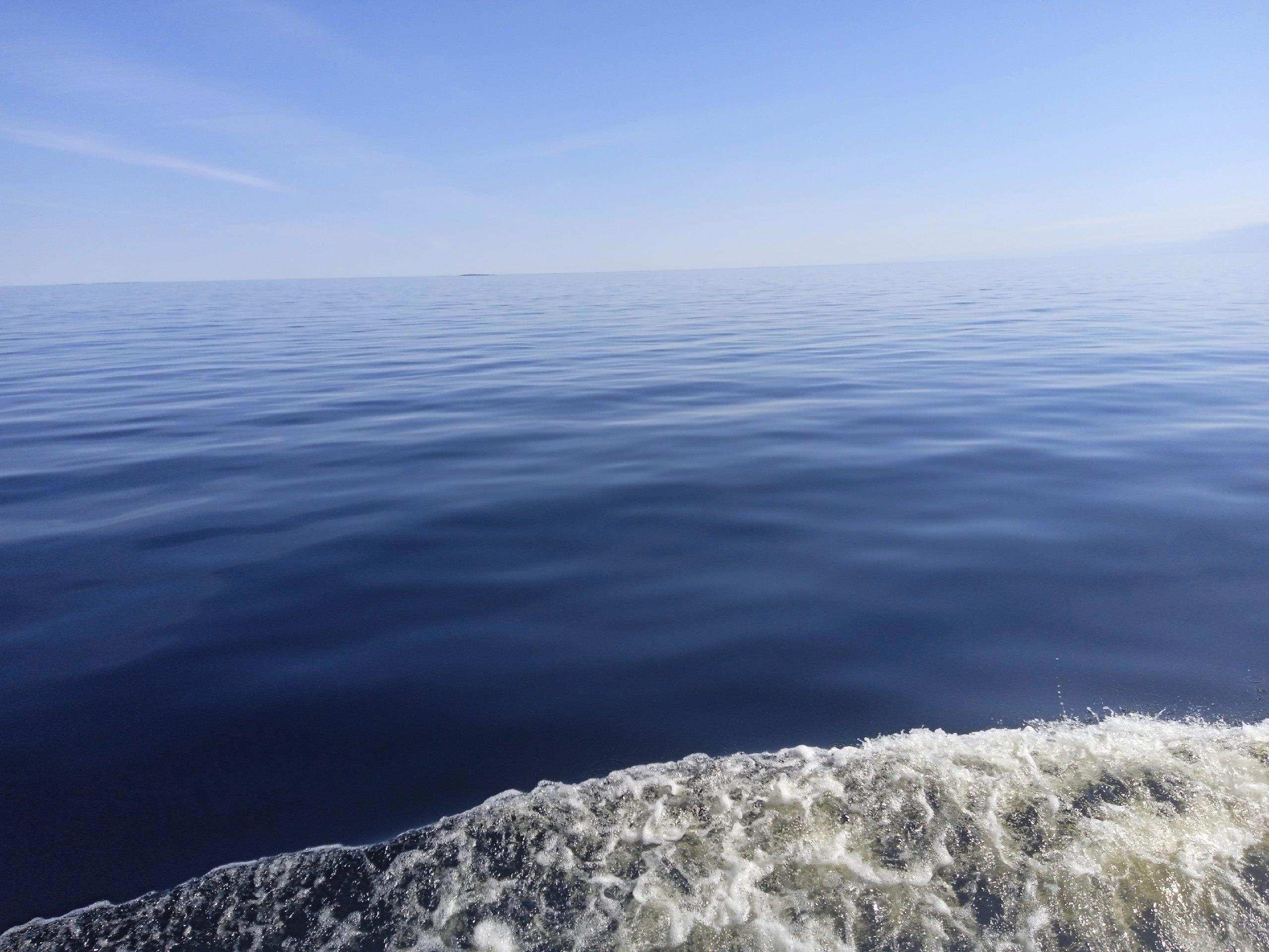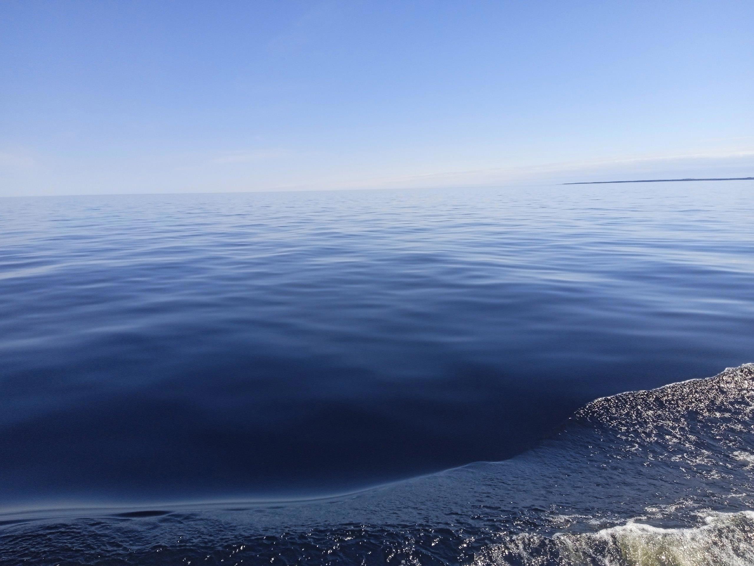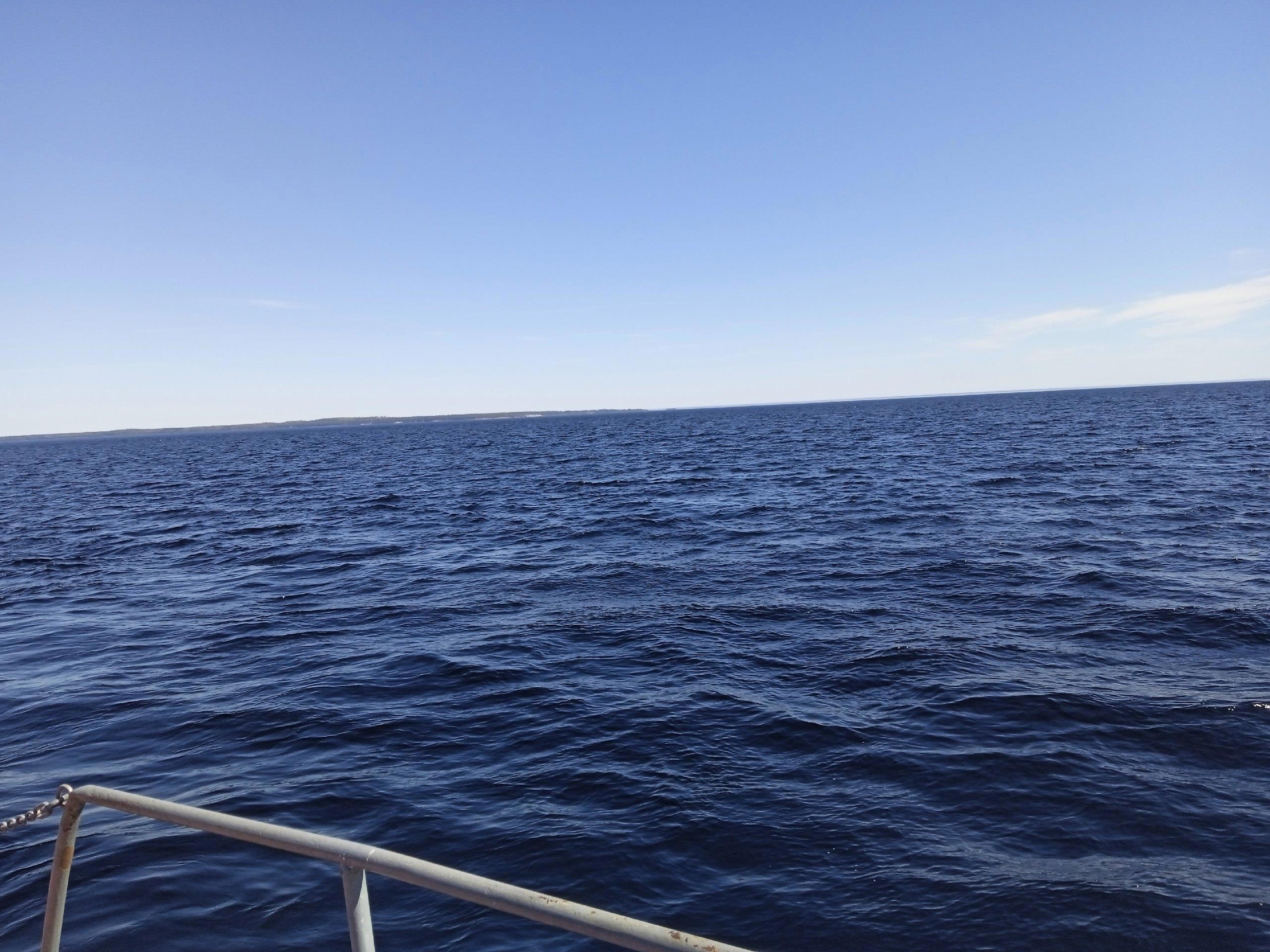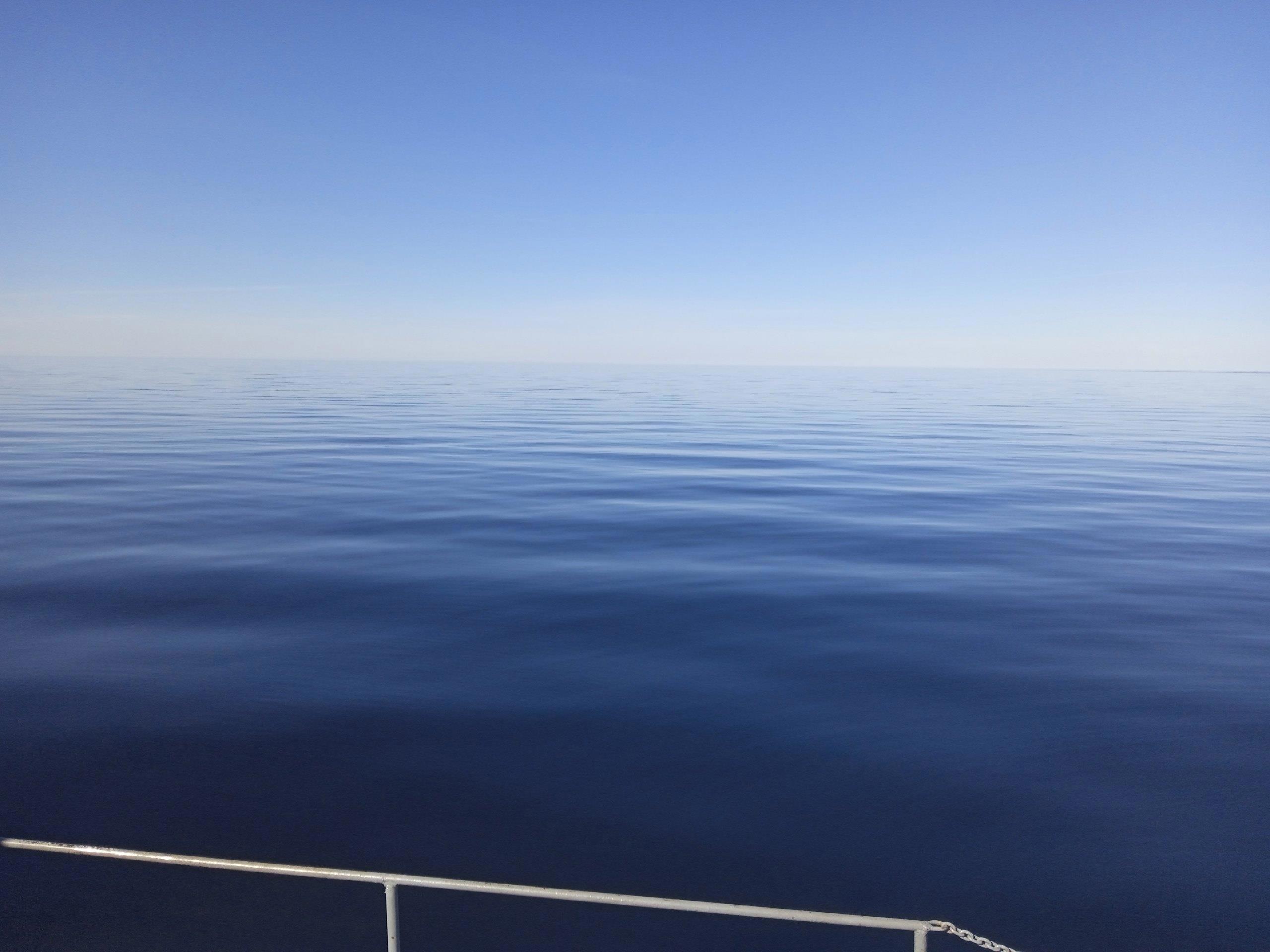 А это второй день. Погода всё ещё благоприятствует, ветра и волны нет. Во второй день мы вышли уже работать с наукой. Отшвартовались от чужого пирса и вышли на нужную точку.