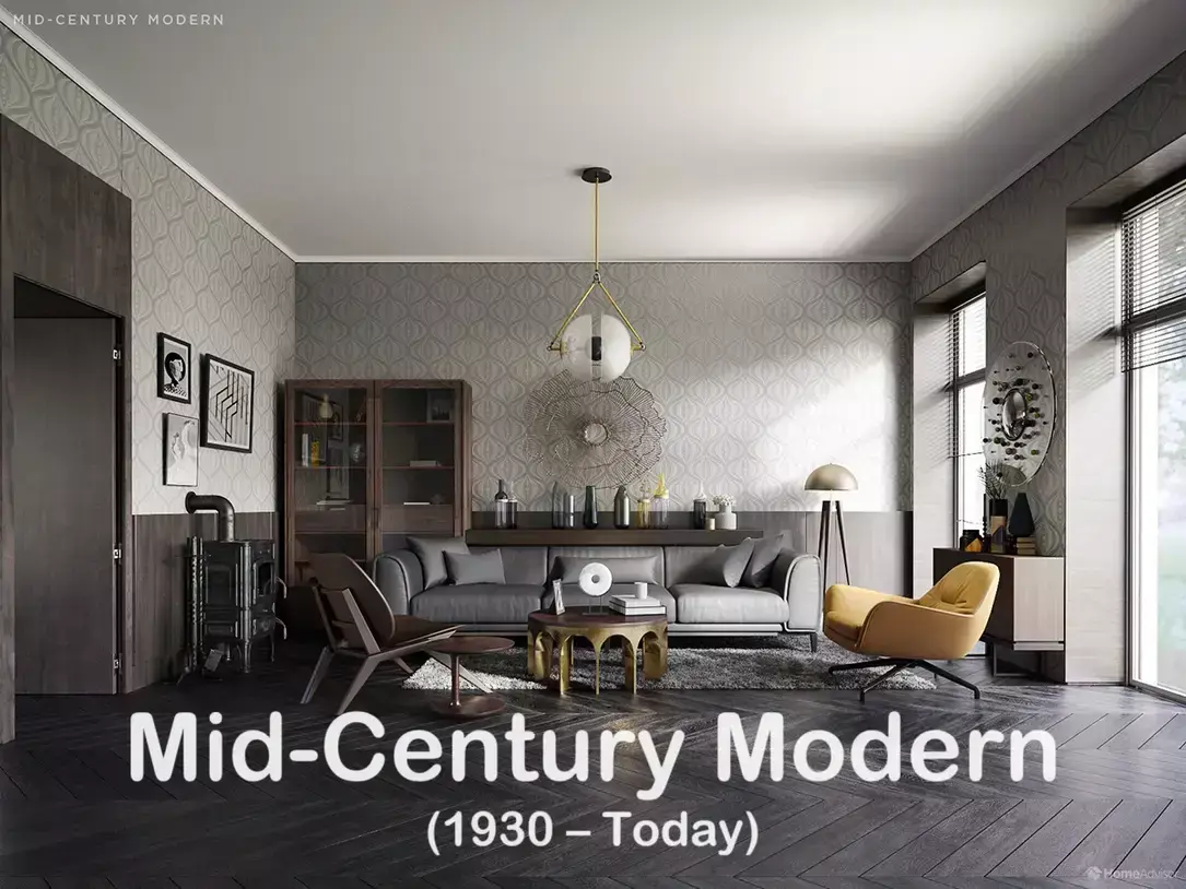 "Направление модерн середины века возникло как более мягкое, пригородное направление модернизма, объединяющее природные элементы. Дизайнеры интерьера представили элементы в деревенском стиле и более свободное использование цвета, вдохновленные скандинавскими и бразильскими мебельными тенденциями. Такие материалы, как ротанг, бамбук и плетеные изделия, кажутся естественными и современными, когда используются в гостиной в виде стульев, зеркал и декоративной отделки.