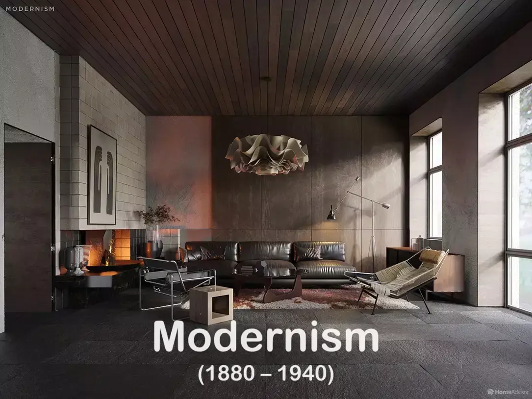 "Как и движение в области декоративно-прикладного искусства, модернизм - это не столько стиль, сколько философия. "Дом - это машина, в которой можно жить", - сказал швейцарский архитектор и дизайнер Ле Корбюзье, пионер модернизма. В оформлении гостиной в стиле модерн использовались новейшие материалы и технологии. Он был спроектирован таким образом, чтобы быть удобным, функциональным и доступным по цене. Красота была преимуществом, хотя элегантные дизайнерские решения ценились высоко.