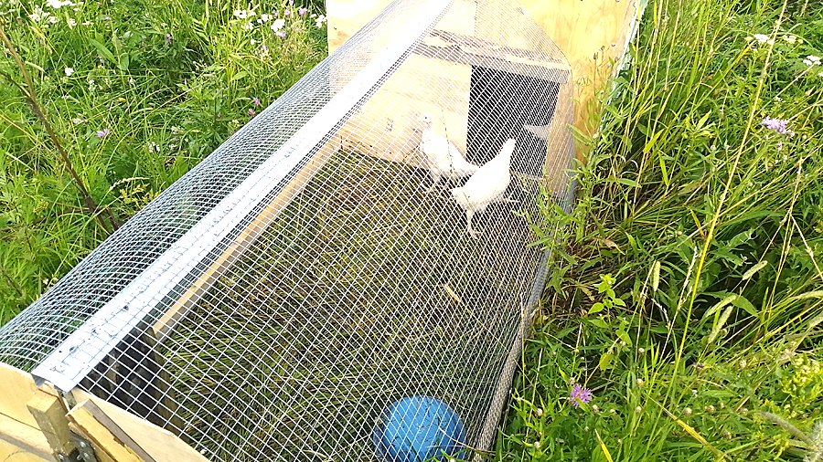 Затем переселяются в мобильные летние курятники (в забугории называется "куриный трактор")