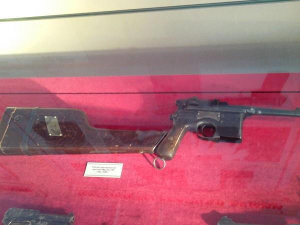 Внутри первого (ближнего ко входу и первого из построенных) четырёхэтажного корпуса музея представлена экспозиция всех видов стрелкового и холодного оружия, начиная со средних веков до нашего времени.