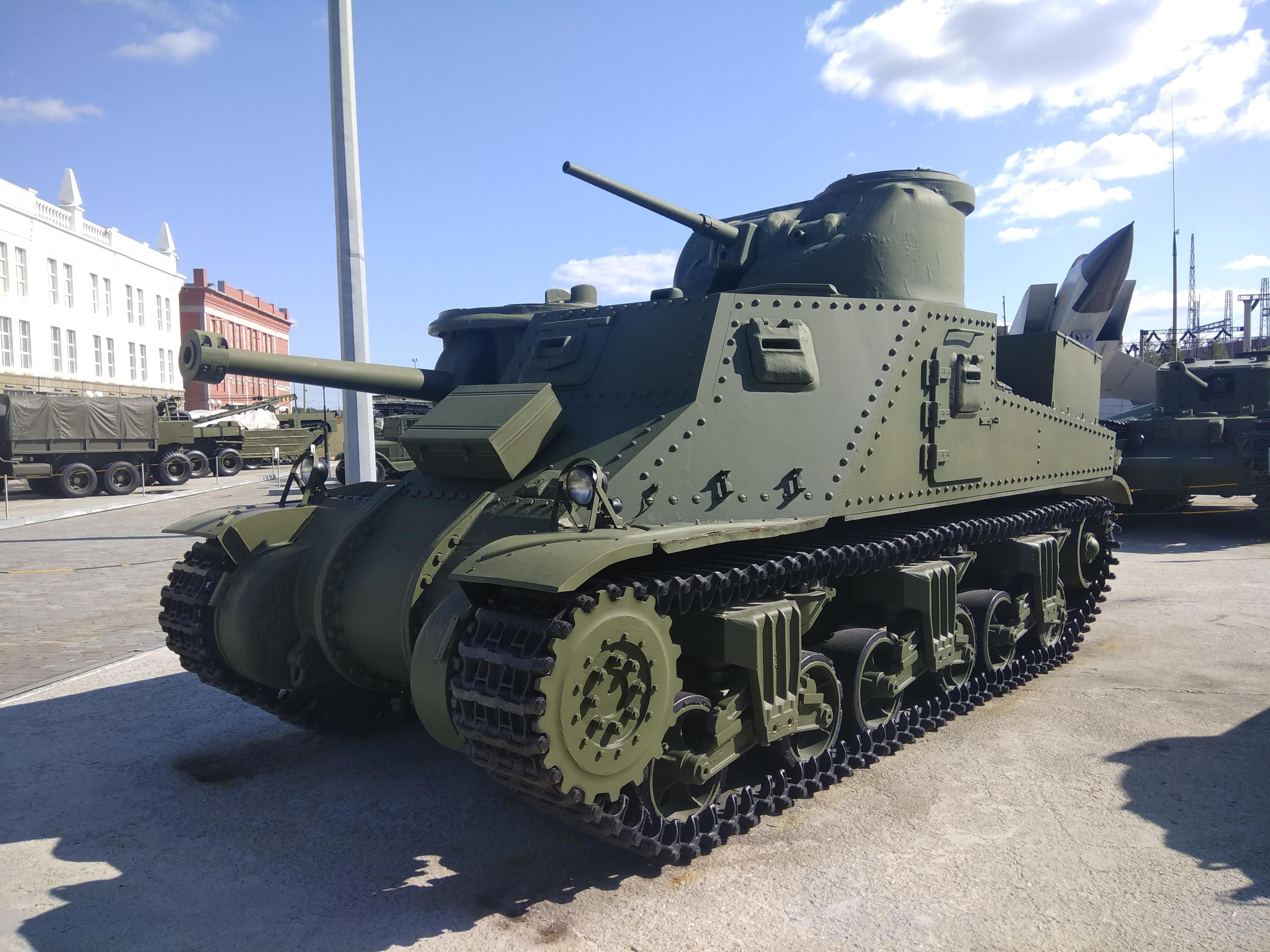 Начнём с зарубежных, ленд-лизовых. Британский M3Lee, очень странный танк с двумя орудиями и только наполовину поворачивающейся башней: