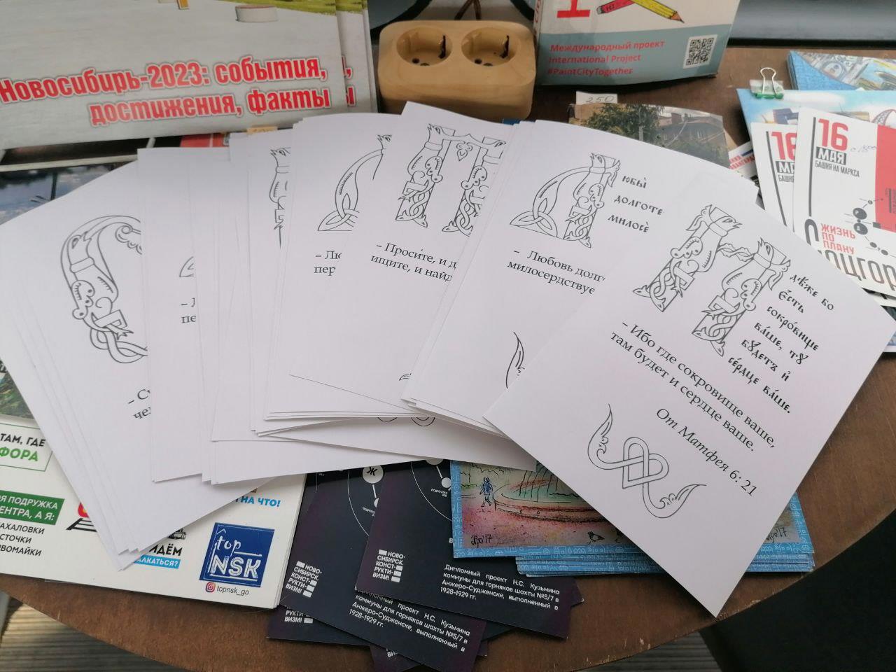 В прошлом году роли старо-/церковнославянского языка в современном мире мы посвятили целый стенд в Доме Учёных Академгородка. Надеюсь, это станет традицией. Вписываться в традиции становится традицией, да. В этом году церковнославянский добрался до особого литературно-просветительского пространства г. Новосибирска – Тринадцатого Трамвая, что завис в задумчивости посреди сквера за Оперным тетром. Внутри – лампово (благодаря лампочкам, конечно) и книжно. Можно посидеть, даже полежать, переждать дождь, снег или жизненные невзгоды. Обязательно познакомиться с Евгением и Сергеем (красные и в горшках – вы их сразу узнаете), а ещё – с Багратом (светлый парень со сладким именем) и Анной, руководительницей проекта . Мы не отходим не только от языковых традиций, но и от литературных: сочетание Анны и трамвая в одной локации само по себе доставляет.