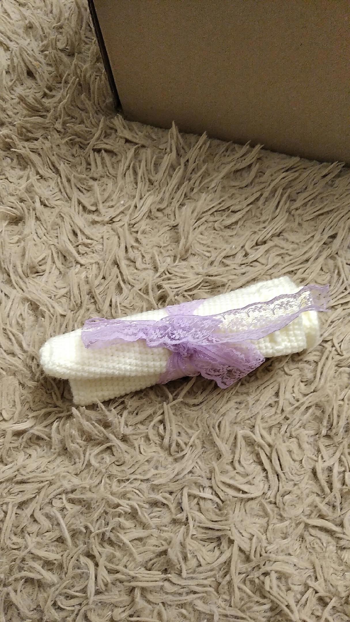 Позже я достала вот такой сверток ручной работы. Но пряталось там не полотенце или шарфик, как могло бы показаться, а небольшой мешочек под что-то любимое и красивое!