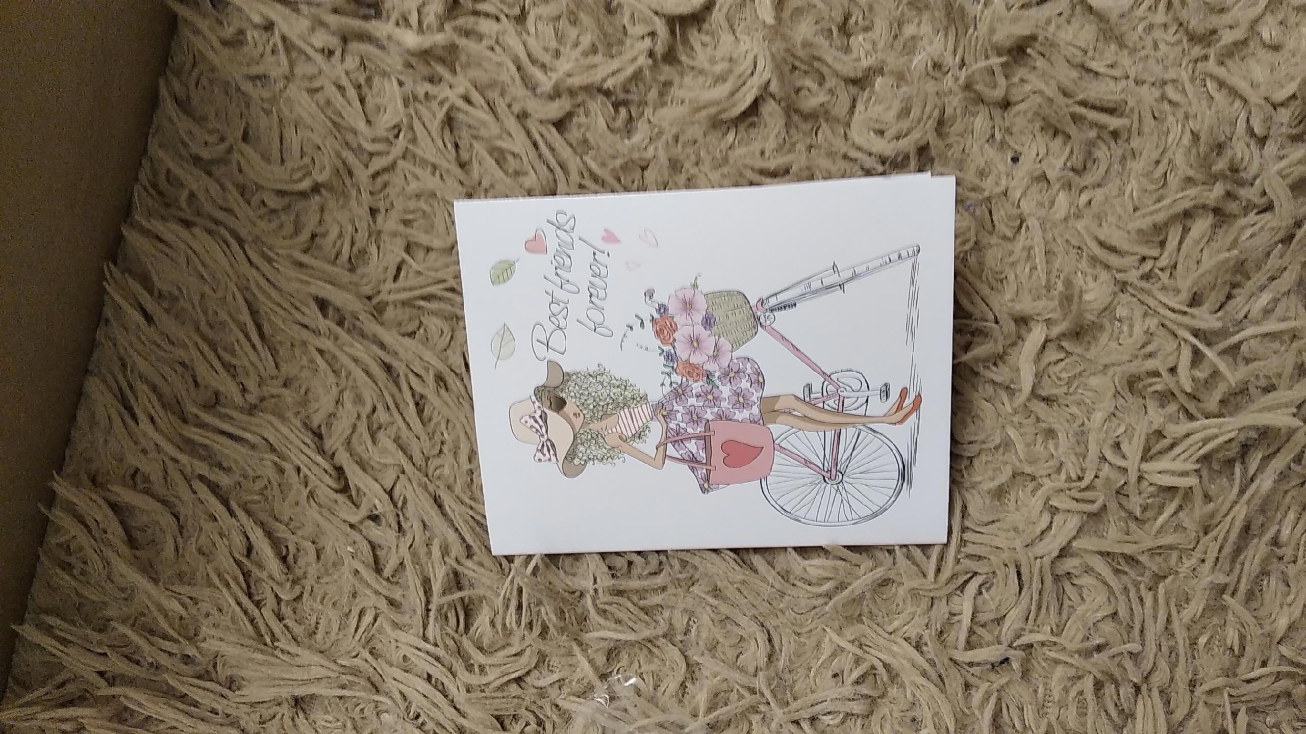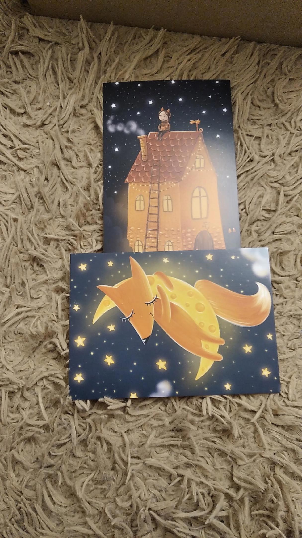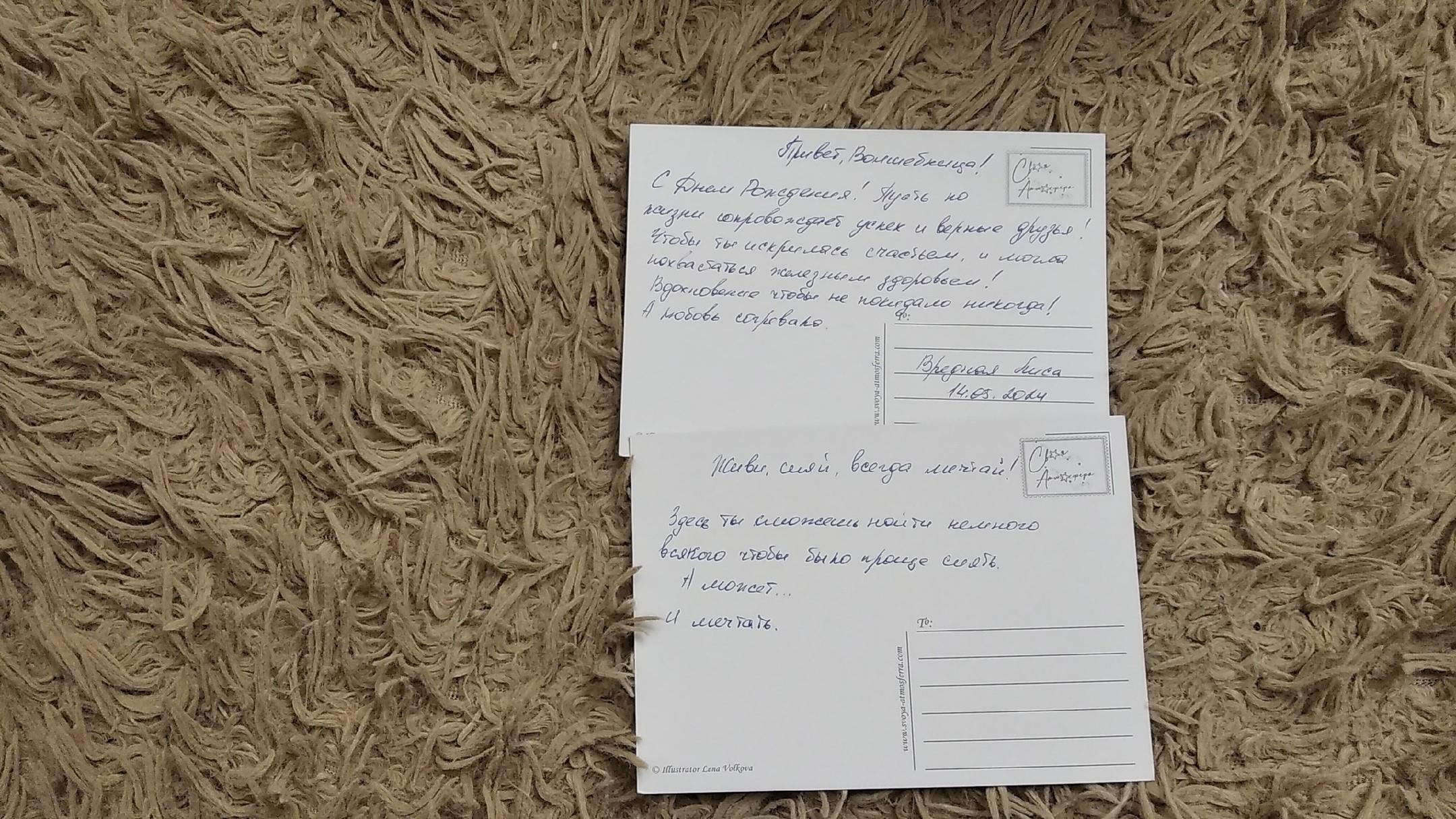 При вскрытии на самом верху были обнаружены открытки в количестве двух штук, на обратной стороне которых Лиса написала теплые слова и пожелания.