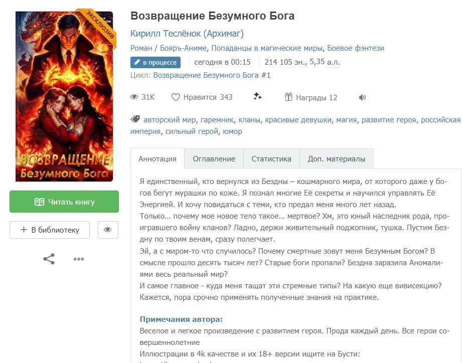Эх... Признаюсь, что серия та 18+ и я чот как-то стесняюсь рецуху написать ))) А Кирилл мне по братски подогнал промиков на книги и даже на бусти где у него вкусные арты к книге ))) Но тс-с-с... Давайте не будем об этом никому говорить. Ибо...