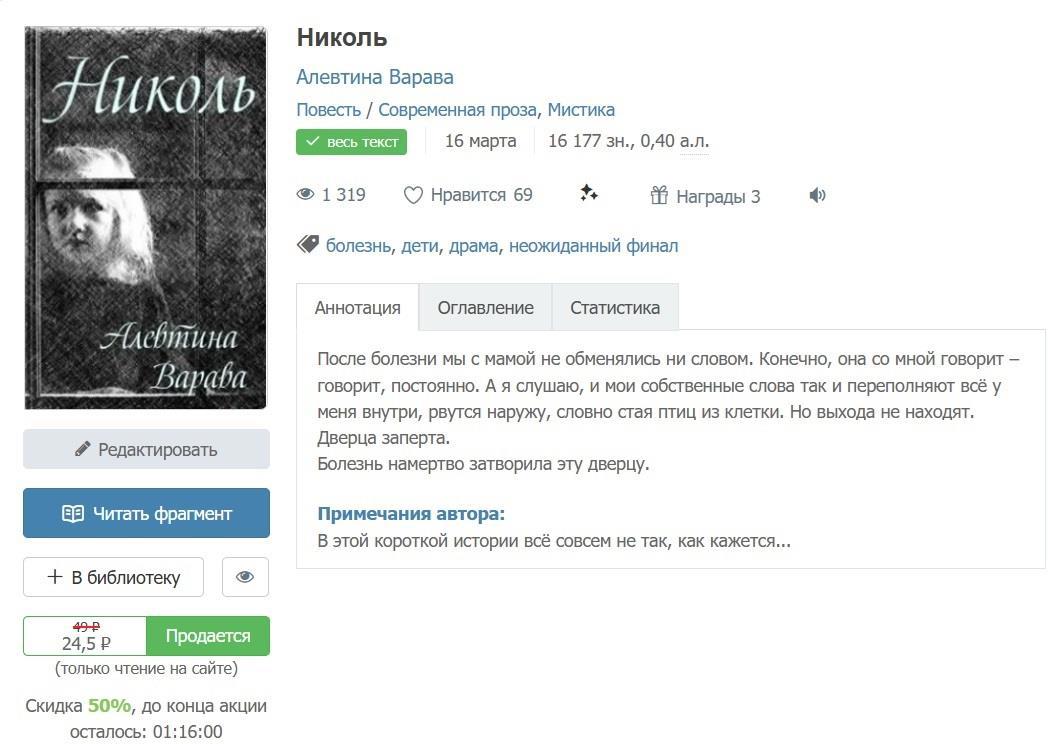 Ещё полтора часа узнать концовку пронзительной короткой истории Николь можно всего за 25 рублей)