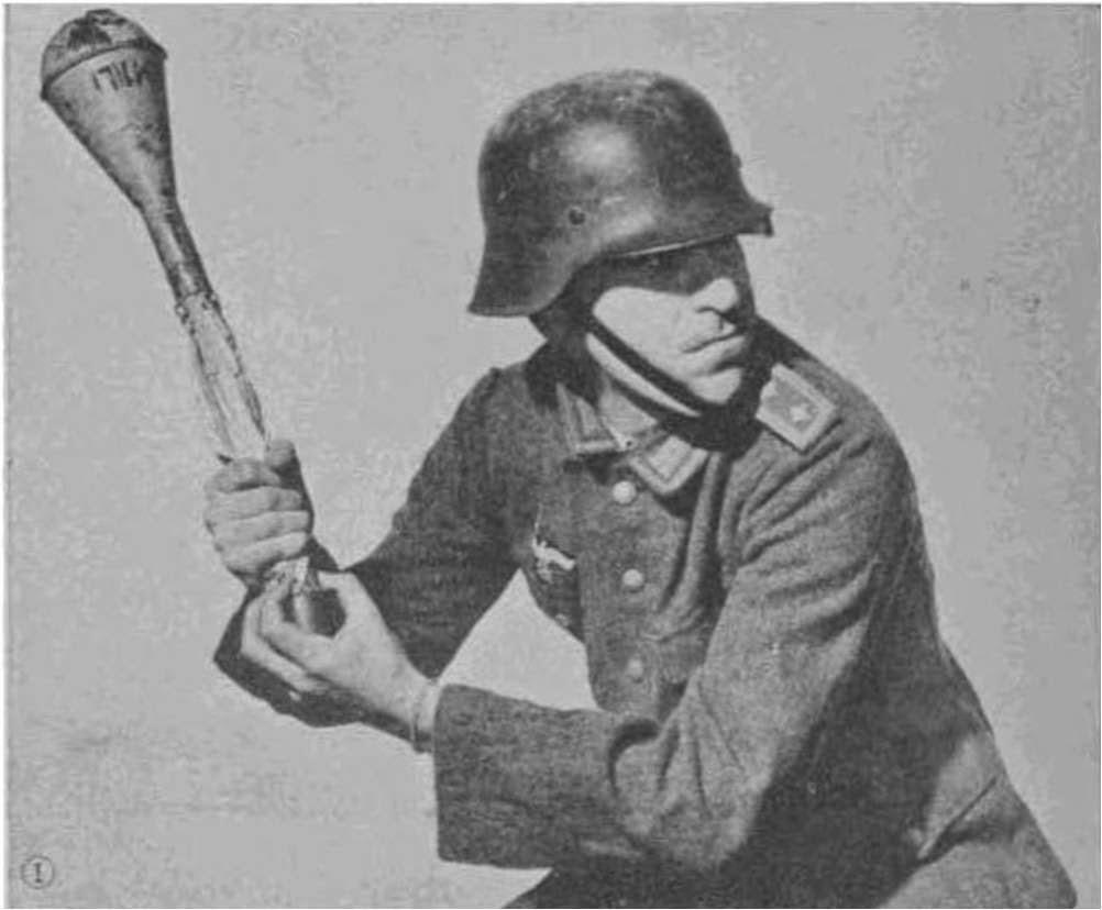 Немецкая Panzerwurfmine1-L (L – «lang» - длинная), громоздкая и сложная в обращении. Этаки недопанцерфауст на минималках с ручной тягой.
