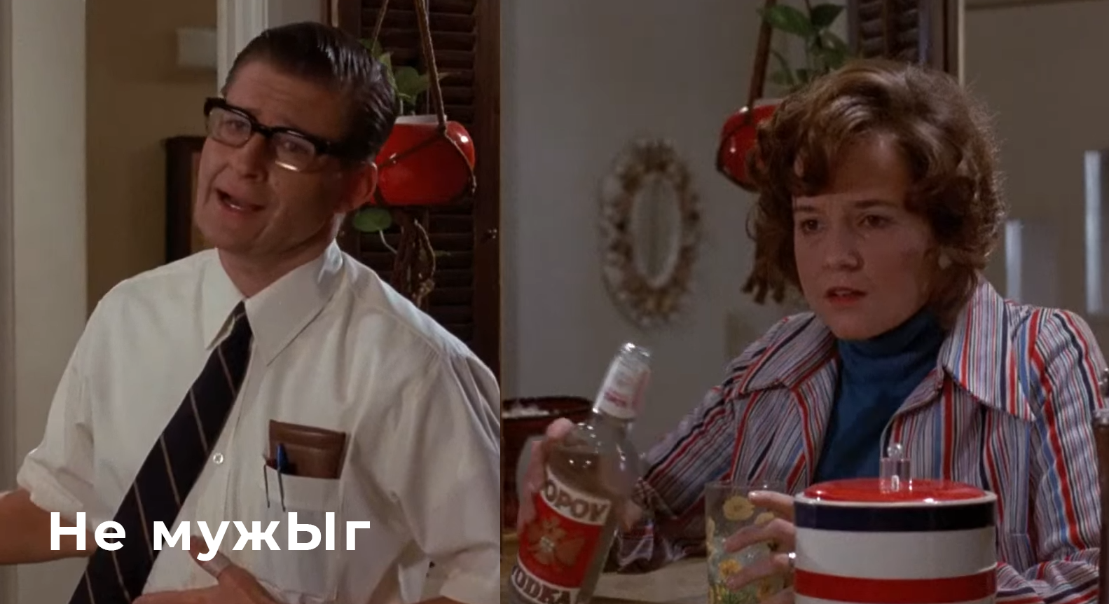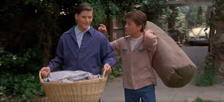 Джордж же тащит корзинку с женским бельем, и занимается женской в общем-то работой - развешивает его сушиться. Эти кадры еще раз подчеркивают что в данный момент Джордж не мужчина, и в какой-то момент Марти даже отбирает у него из рук лифчик и выбрасывает в корзину, как бы говоря - "все, завязывай с этим".