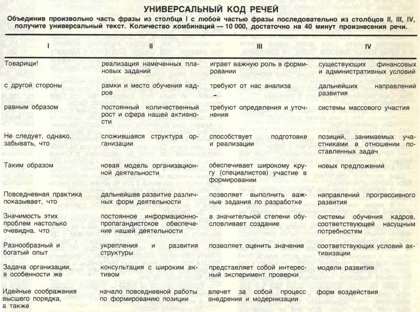Это как выйти на трибуну чтобы сказать некую речь, причем не понимая что вы хотите сказать. У вас есть огромное количество слов в голове, куча устоявшихся выражений и примерное представление о правилах языка. Вы знаете какие слова разумно ставить рядом а какие не стоит и собственно все. В итоге получается что-то такое:
