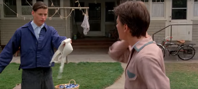 Плюс в эту же сторону работают все остальные моменты в фильме демонстрирующие схожесть. Мы уже ассоциируем себя с крутым Марти, и Джордж, с которым ассоциироваться не хотелось бы, теперь стыкуется как-то проще.