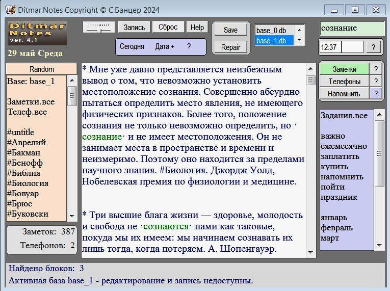 Поэтому пакет "Дитмар" - это помощник! Помощник автору, редактору, корректору, а с появлением в версии 4.1 приложения Ditmar.Notes (продвинутого блокнота-органайзера) - просто помощник человека.