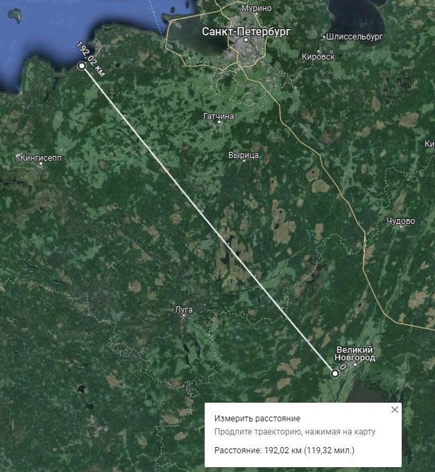 Ребят, вы меня, конечно, извините, но в двух милях от Балтийского моря на 60-й широте находится совсем не Новгород, а город, известный как Санкт-Петербург. В частности, в двух германских милях от Балтийского моря на 60-й широте находится Красногвардейский район: