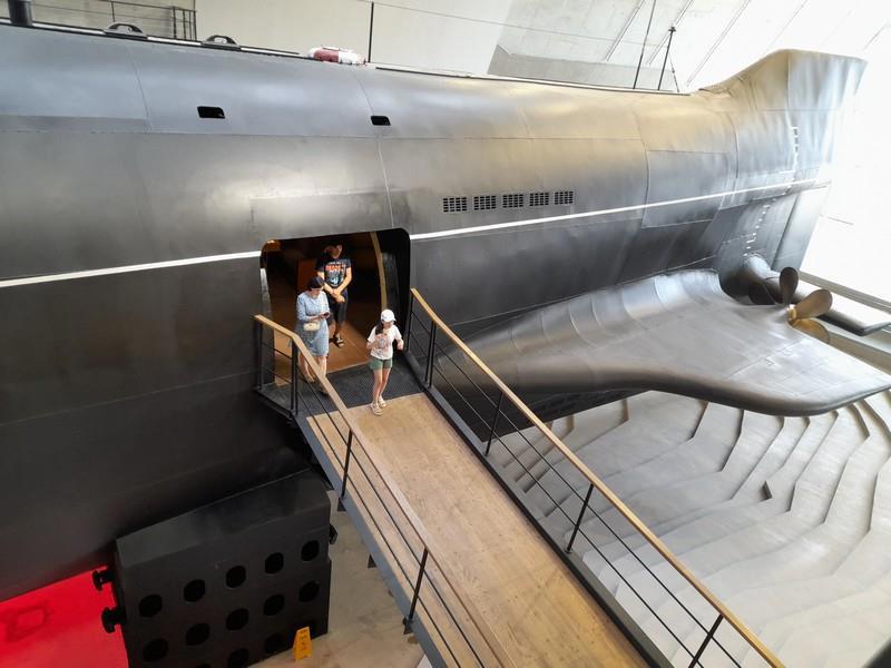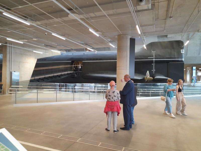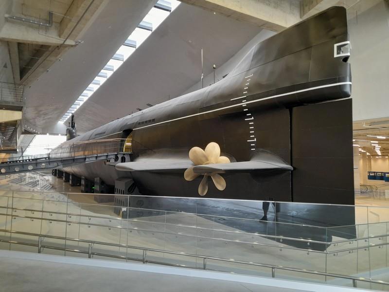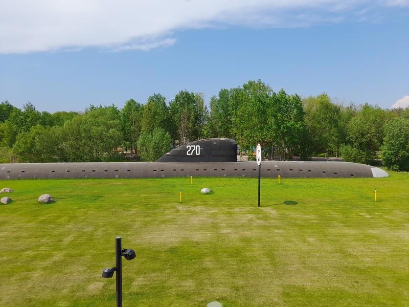 Гвоздь музея - атомная подлодка. Как ее везли и ставили - отдельная песня. Сейчас внушает. Сзади, полагаю, каморка для взадсмотрящего с фонарем. И со стеклянным окошком.