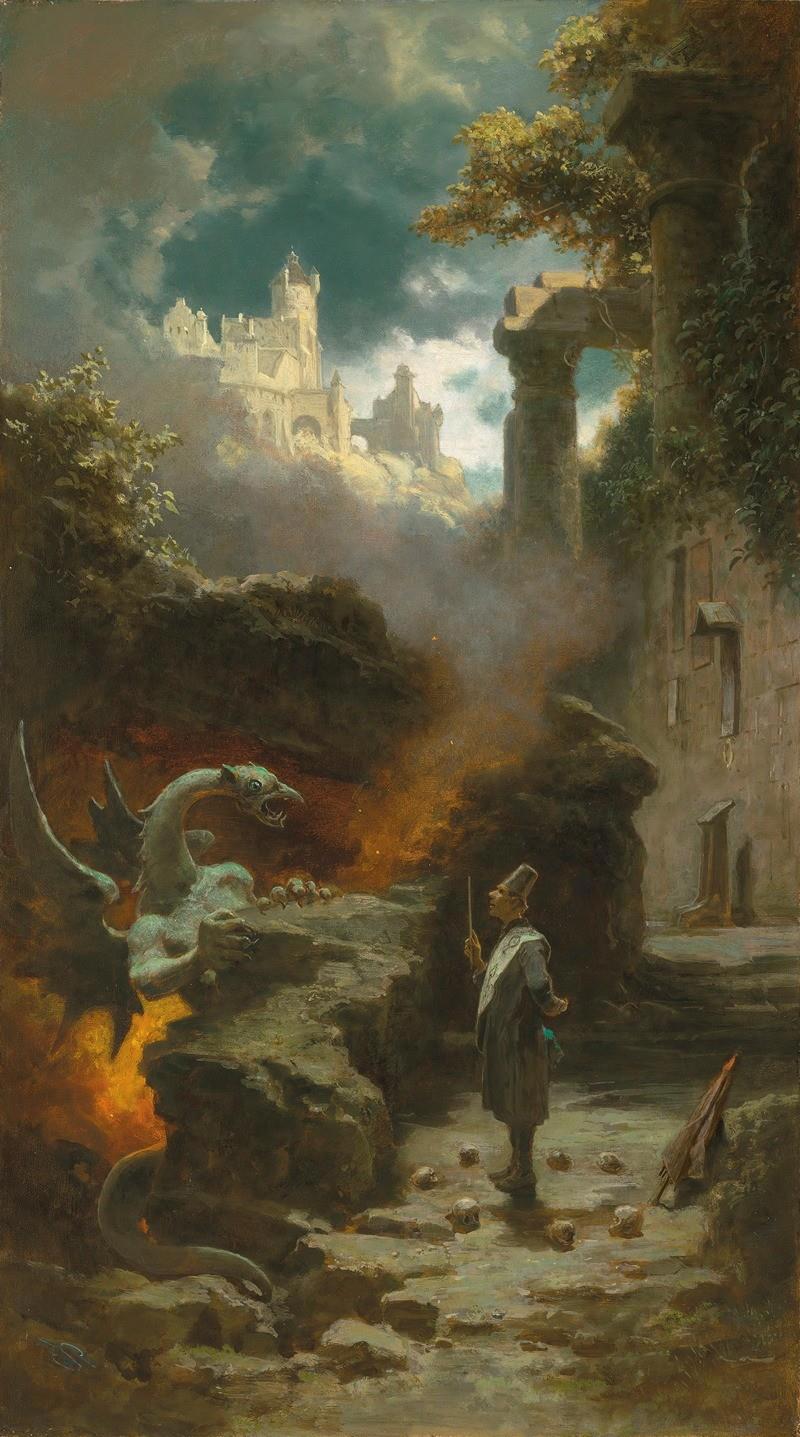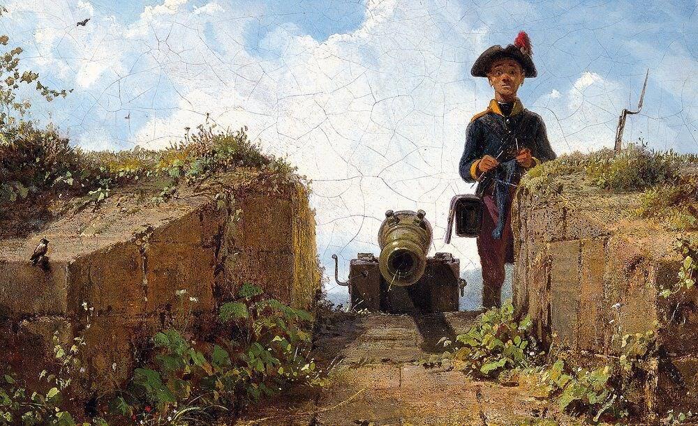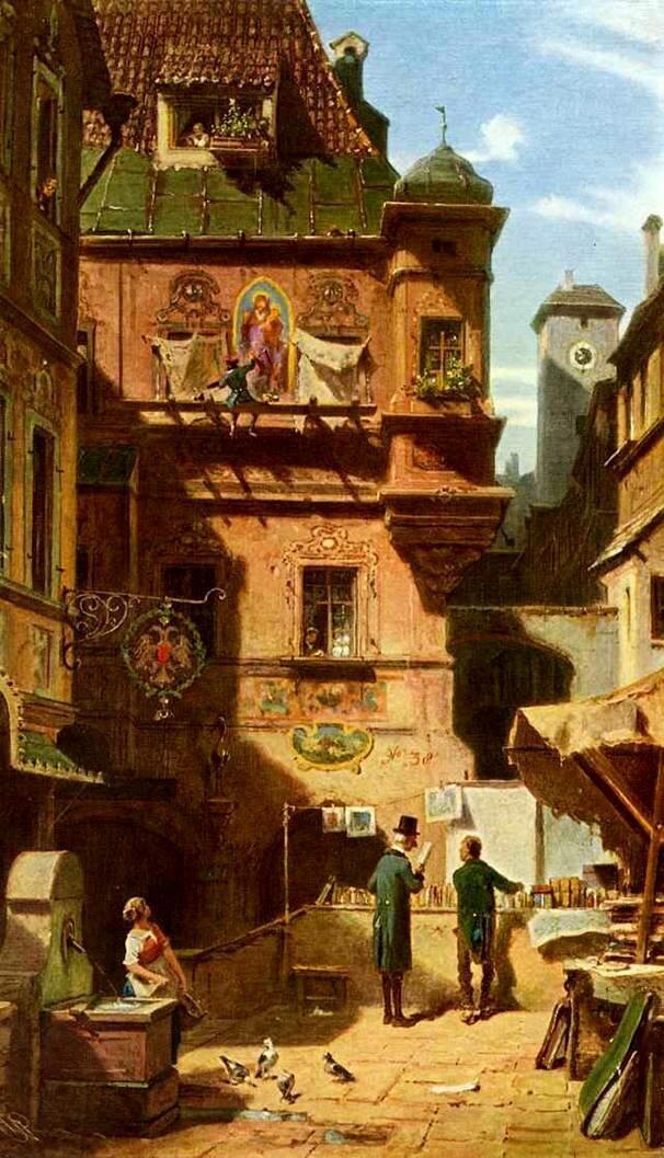 Автор: Волкова НатальяДавным-давно набрела я как-то в книжном магазине на альбом с картинами немецкого живописца, Карла Шпицвега. Сказать, что мне понравились его милые образы - ничего не сказать. Пряничные городки и деревеньки, игрушечные домики, словно из сказок его соотечественников и современников - Гофмана, Гауфа, Иоганна Музеуса и Фридриха де Ла Мотт Фуке. Забавные куколки-человечки и их невинные проделки, солдатики-щелкунчики, спящие на посту, занятые ловлей назойливых мух или вязанием тёплых набрюшников. Чудаки-учёные, похожие на кактусы или на ворон. И на сладкое - ведьмы на мётлах, весёлые никсы-русалки, колдун, вызывающий демона из пылающей преисподней и гномы, удивлённые паровозом на первой железной дороге. Предлагаю и вам полюбоваться на них.