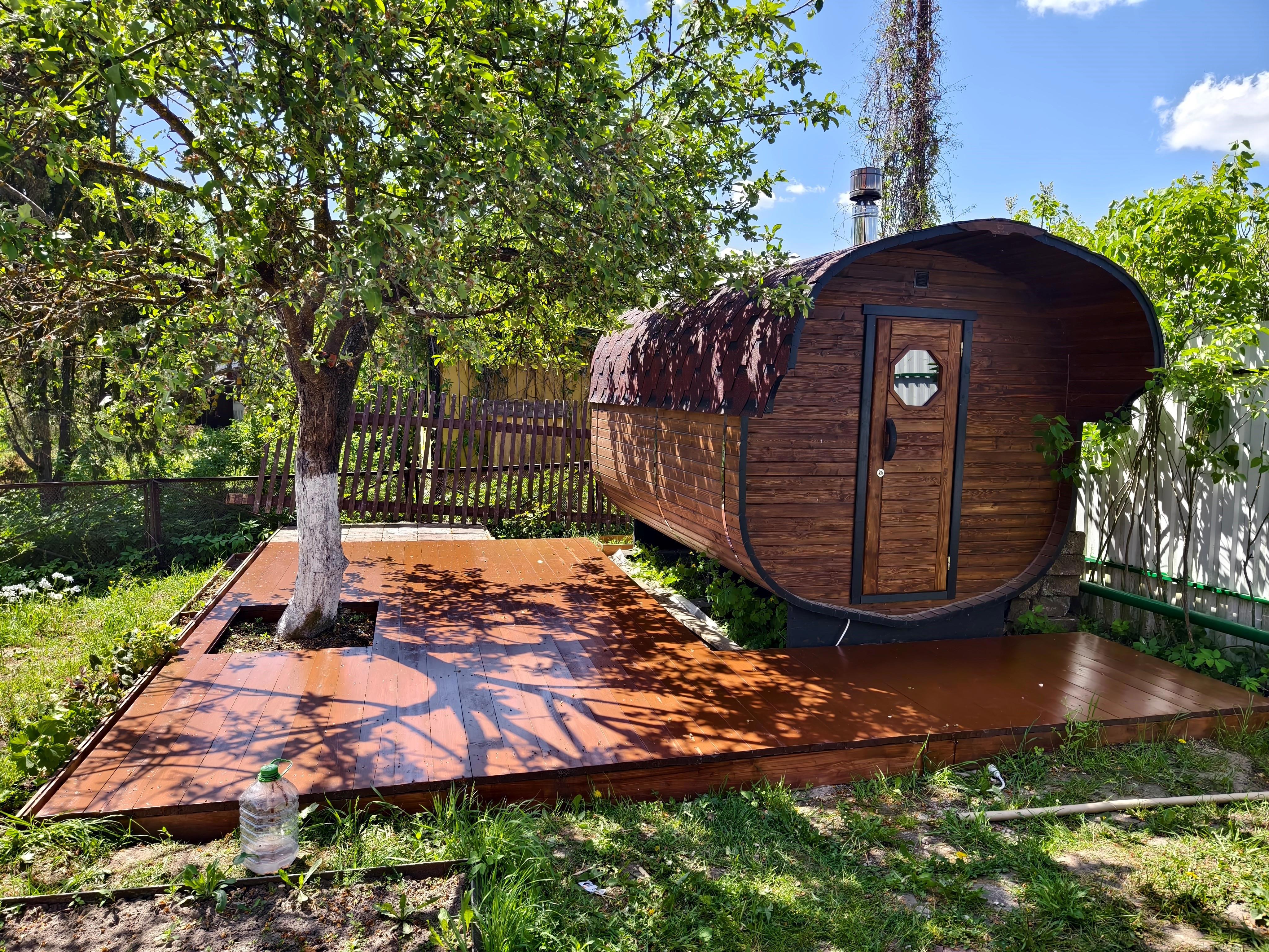Тут я даже немного похвалюсь. Вот какую штуковину замутил рядом с баней. Кто-то называет это настил, кто-то подиум.