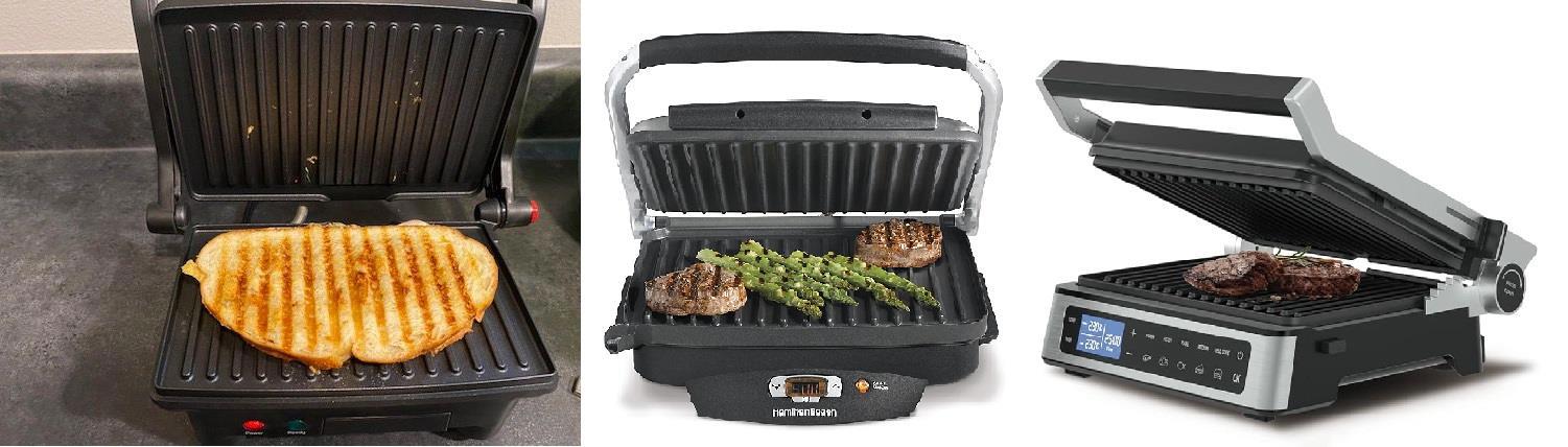 Они все тяжёлые (на подобии наших вафельниц) – две чугунные жарочные панели – сверху и снизу. Разница между этими тремя лишь в количестве режимов.