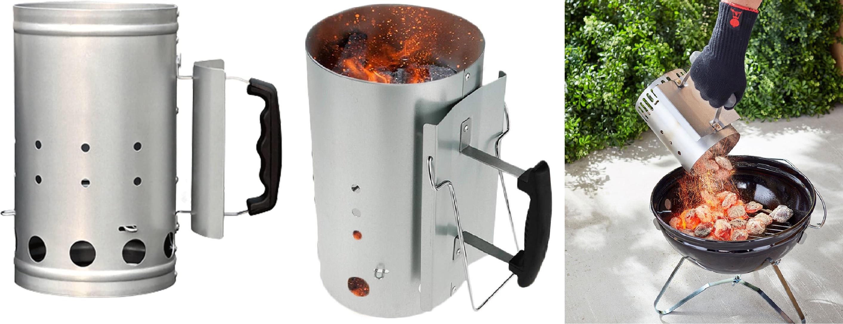 К углям часто используют вот такую вещицу – называется «charcoal chimney started» (печная труба для разжигания углей) – действительно, заметно ускоряет процесс.