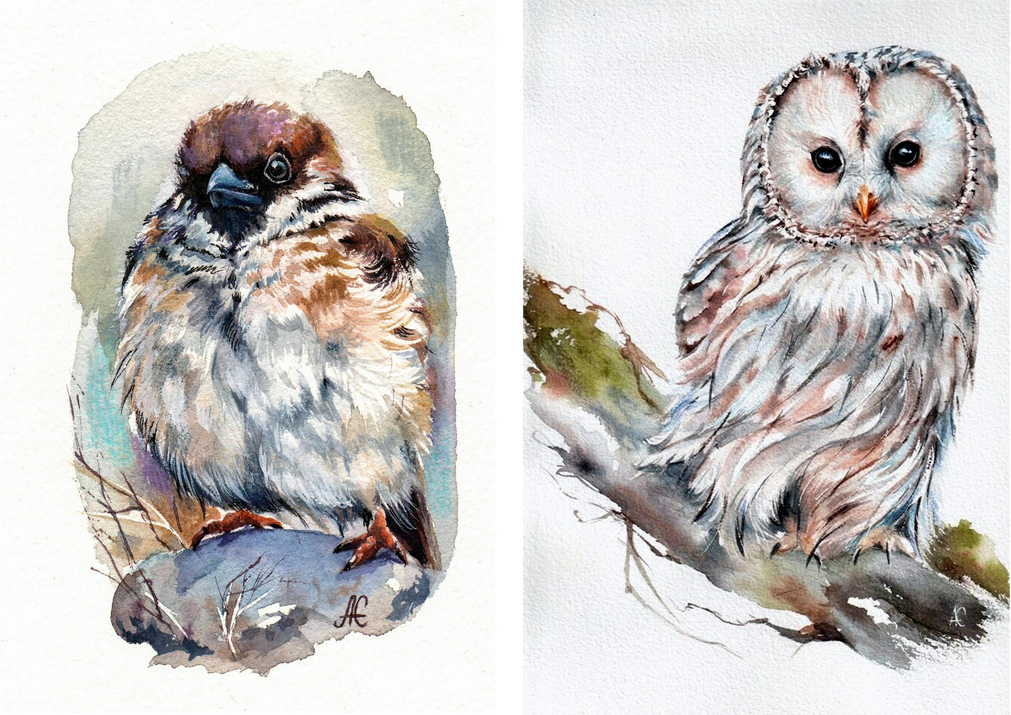 Автор: ЛилияДрузья, предлагаю сегодня полюбоваться на работы художницы Альбины Статных. Она пишет акварелью портреты птиц и животных. Присмотритесь. Сколько любви и доброты в каждой акварели, сколько жизни! Они все почти настоящие...прям вот-вот зачирикают, защебечут, замурлычат... А медведь, по моему, притворяется спящим, посматривает!