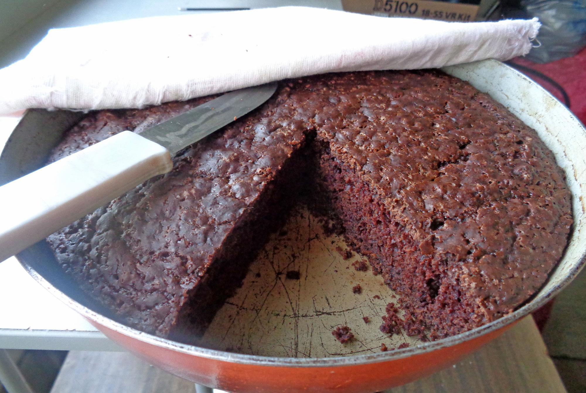 - Выпекать на среднем огне около получаса. Проверить на готовность, проколов спичкой или иным острым предметом. Если спичка сухая - можно вынимать.