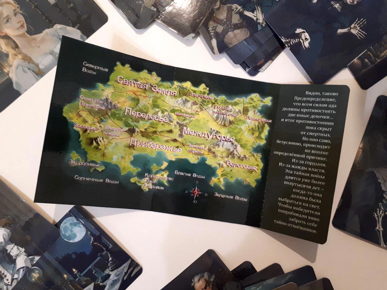 Внутри - карта северных земель Мира Королей и ещё одна цитата, а на оборотной стороне - некромантский натюрморт.