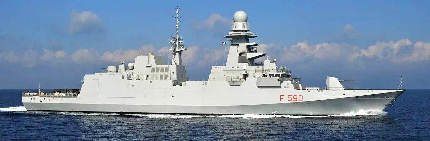 Наступив примерно на дюжину граблей с проектированием «прорывных видов» оружия, они получили неоценимый опыт – узнали, что не всё золото, что блестит в рекламных буклетах. На этот раз они не только не стали пугать сами себя (мир уже не пугается) заумными видами вооружения, которыми они тупо не располагают, а устанавливают то, что есть. Не стали даже «изобретать велосипед» в части проектирования корпуса, а просто взяли в качестве прототипа один из существующих кораблей. Выбор пал на итальянский фрегат. Вот такой «Fremm», который уже плавает не только под итальянским флагом, но и других стран, например под флагом Египта: