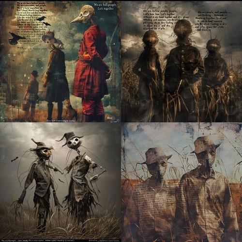 А это картинки, созданные Мастерской Шип, вдохновлённой приведёнными в моей рецензии цитатами из стихотворения Томаса Стернза Элиота «Полые люди»