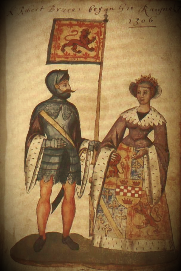 Брюсы с Фолкнера вплоть до 1306 года были во Франции и присоединись к борьбе только после де факто капитуляции клана Коминов и предательства народа Шотландии их лидером – Джоном Комином Красным, а также смерти Уильяма Уоллеса. То есть по существу они вошли на «освободившееся место». О причинах такого феноменального разворота будет ниже. Елизавета де Бург действительно сохранила верность своему мужу, после первого его поражения в битве при Метвене в 1306 года и последующего за ним собственного плена, но вот к идее независимой Шотландии всегда относилась прохладно. Она не одобряла мятежа своего мужа и отзывалась о нём и его сторонниках, как о «детях, играющих в королей и королев». Также вопреки фильму в плену ее никто не пытал и в клетке не подвешивал – это уже народные сказки, красивые, но сказки. Она всегда была «почетной пленницей», шотландской королевой, которую потом выгодно обменяли на английских рыцарей, плененных при Бэннокбёрне.