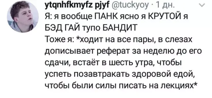 Я ж типа терапию тераплю, ок да? И вот там у меня было задание, написать 10 вариантов и ответы на вопрос "Кто я?". Это было вообще не сложно, потому что и сама себе, и другие люди давали мне определения. Но чаще это панк-биолог, иногда просто панк (куратор по КВН назвал только один раз, а два раза назвал меня королевой кринжа, но это в принципе похожие понятия), в определённом кругу Русалка... Короче, варианты есть и нашлись они быстро.