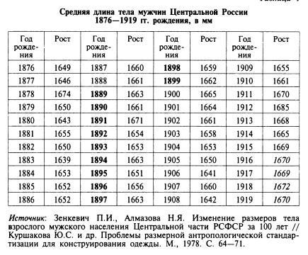 Из приведенных данных следует, что средний рост мужчин 1881—1890 гг. рождения — в десятилетие, предшествующее вступлению Витте на пост директора Департамента железнодорожных дел, равнялся 1654 мм, средний рост мужчин 1891 — 1905 гг. рождения — в годы, когда Витте определял экономическую политику, составлял 1659 мм, наконец, средний рост мужчин 1906—1915 гг. рождения — в десятилетие после отставки Витте был равен 1662 мм. Как видим, в годы, когда Витте определял экономическую политику, физиологический статус населения повысился.