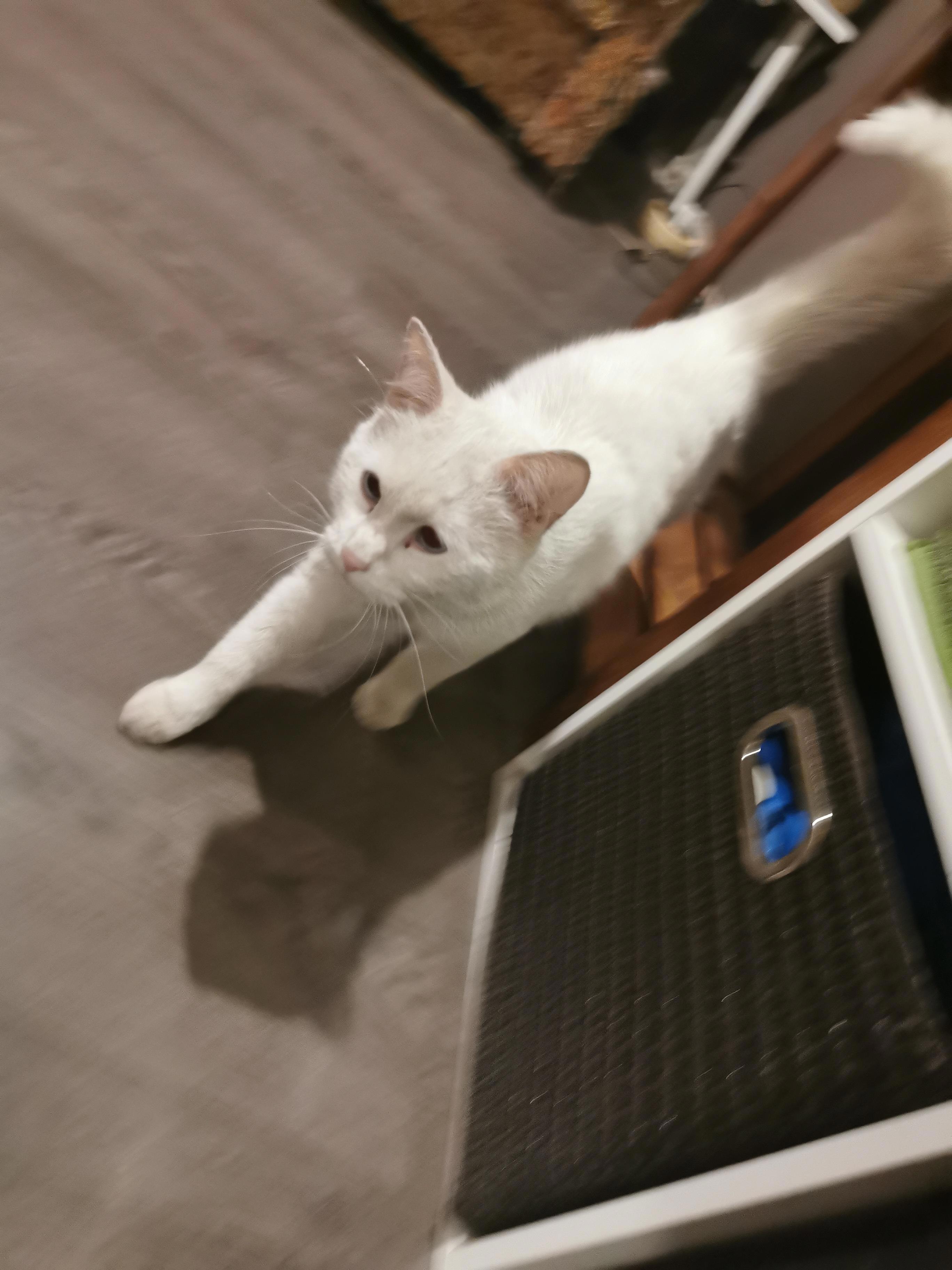 Хозяева смеялись, наблюдая за его энергичными прыжками и неуклюжими, но такими милыми движениями. Хвостосос, несмотря на свою глухоту, наслаждался игрой, полностью погрузившись в процесс. Его белая шерсть переливалась на свету, а голубые глаза блестели от радости.
