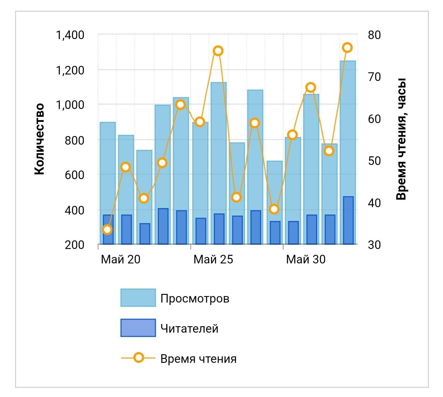 А кстати! Знаете, каких дней мы больше всего боялись, когда набирали часы чтения? Пятниц. Потому что в пятницу после 16:00, как известно, мир вымирает. Все накидываются после трудовой недели, и до середины субботы им уже не до чтения🤪 Оказалось, боялись мы совершенно зря. Вышло наоборот! Пятницы - наши рекордные дни наряду с воскресеньями (70 ч +/-). Как приятно понимать, что так много людей выбирают книги вместо похода в бар! Так держать, ребята!