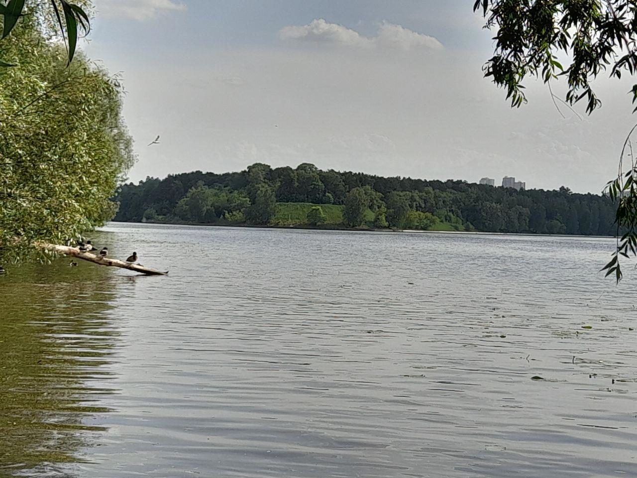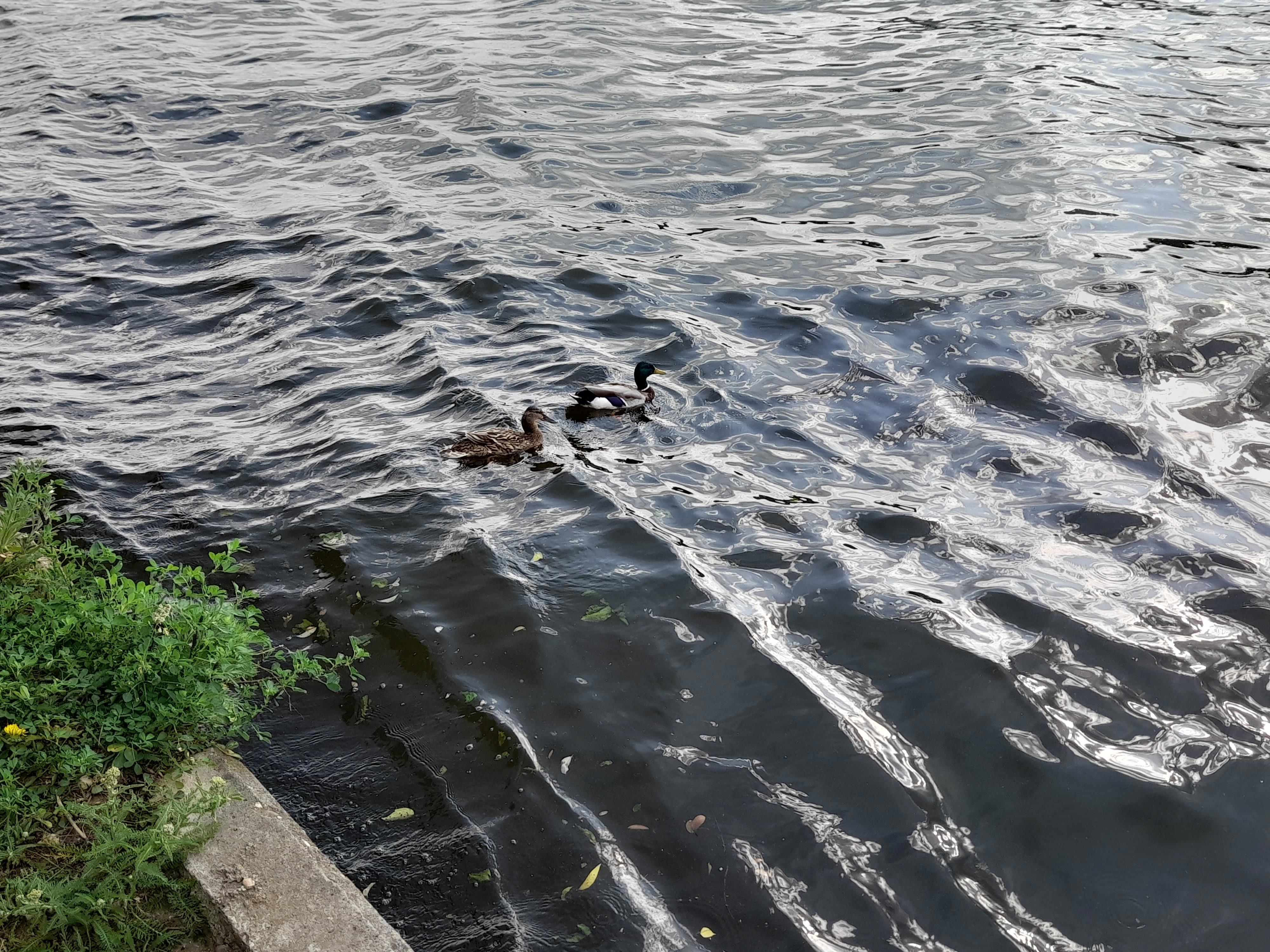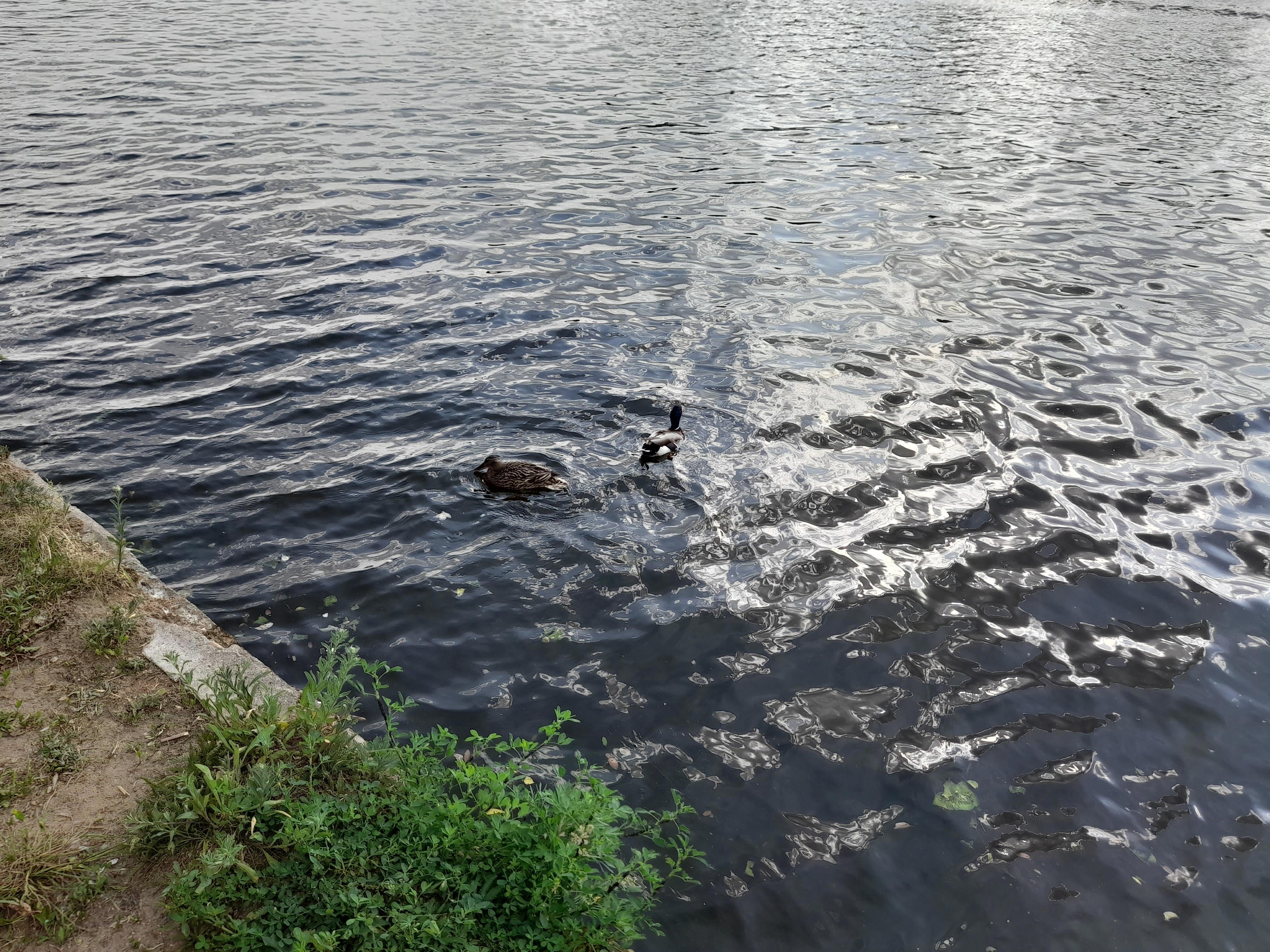 Здесь река поглубже и шныряют уточки.